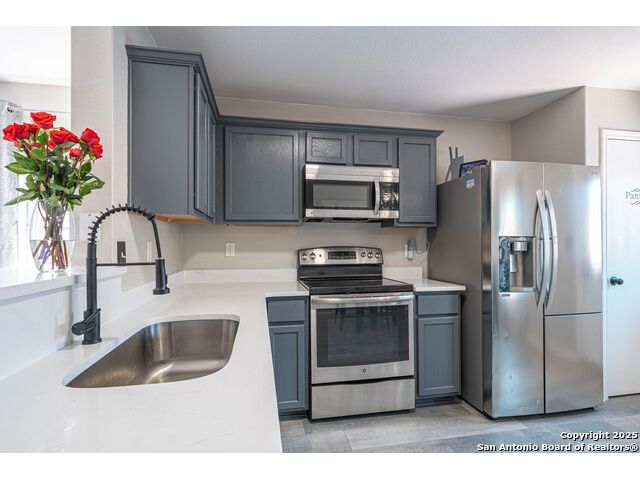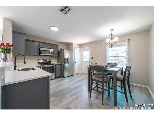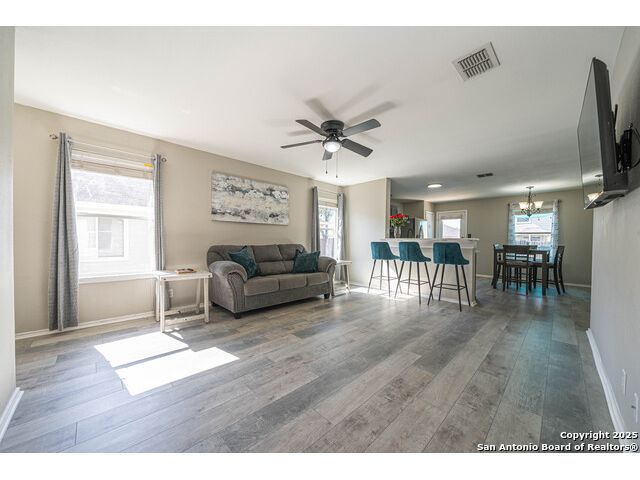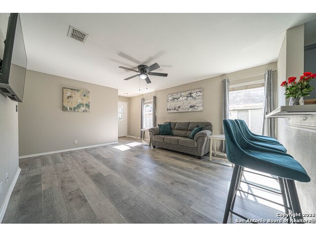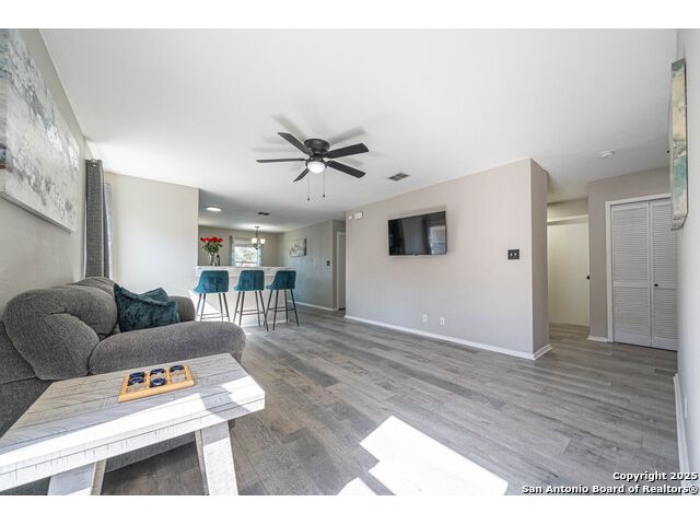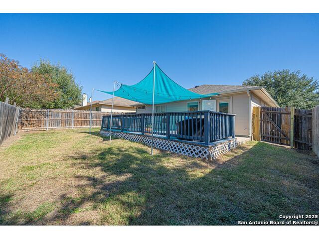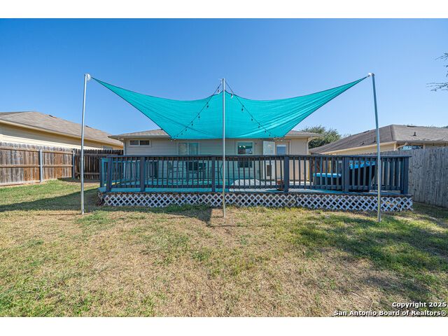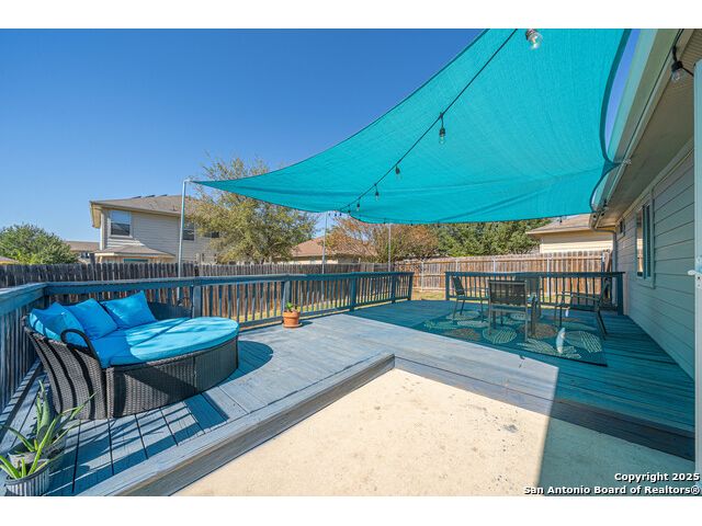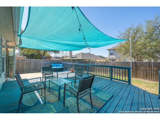 Step into this beautifully updated home in the desirable Whisper Meadows community, where modern style meets everyday comfort. This beautifully updated 4-bedroom, 2-bath residence combines modern finishes with everyday comfort. Step inside to discover stunning waterproof luxury flooring, fresh quartz countertops in the kitchen and bathrooms, and updated fixtures throughout. The open-concept living area is perfect for entertaining, while the spacious kitchen offers ample counter space and stylish cabinetry. Enjoy outdoor living on your expansive backyard deck, complete with a covered sail awning-ideal for relaxing or hosting gatherings. The brand-new roof adds extra peace of mind. Conveniently located near top-rated schools, shopping, and Randolph AFB, this home blends quality, style, and location perfectly. Don't miss your chance to own this move-in-ready gem in Schertz!