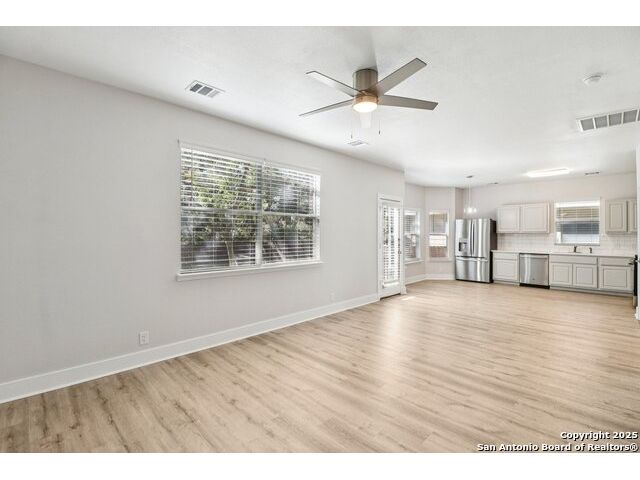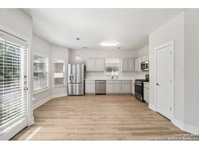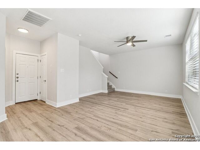 Stunning 2-story, 2080 sq. ft. single-family home in gated Heights of Stone Oak with/ many upgrades to list... Newer: interior/exterior Sherwin-Williams paint, plumbing fixtures, door hardware, reconditioned and re-painted cabinets, kitchen backsplash and quartz countertops, stainless steel GE refrigerator, dishwasher, microwave, and gas stove/oven in the kitchen, luxury water resistant laminate vinyl stone-based plank floors throughout, no carpets, patio slab, full sprinkler system, newer HVAC unit, Oakridge roof shingles.
