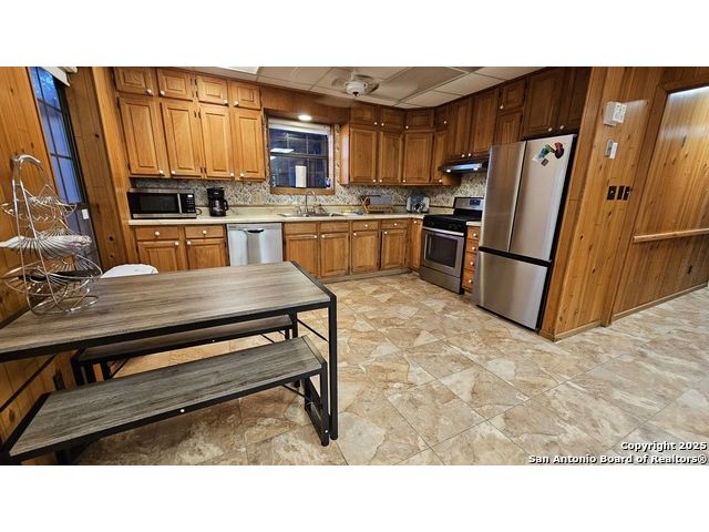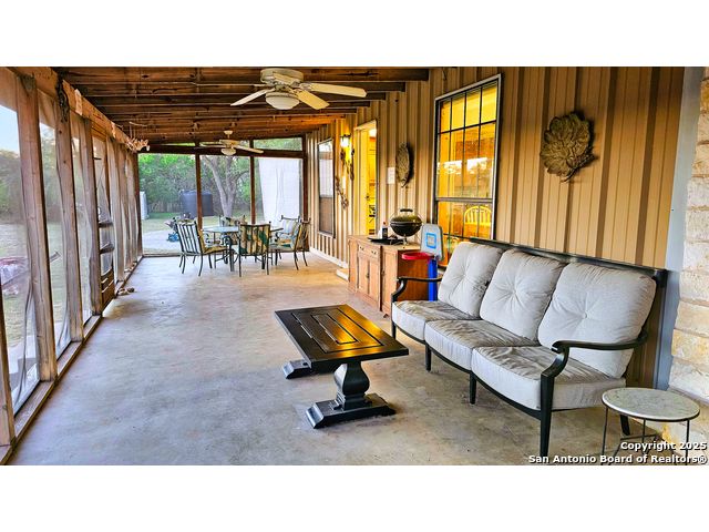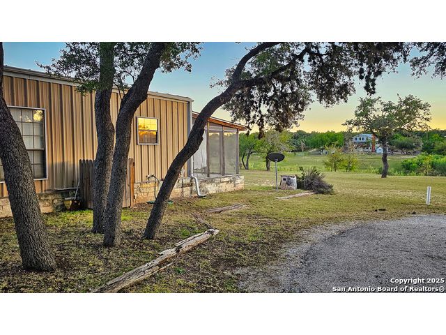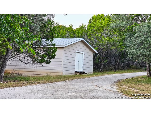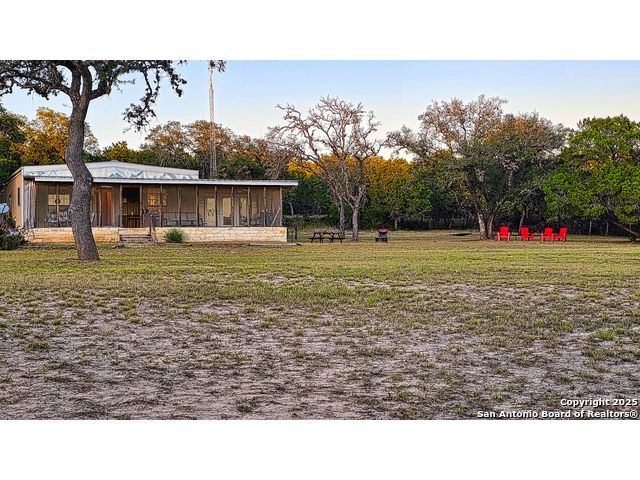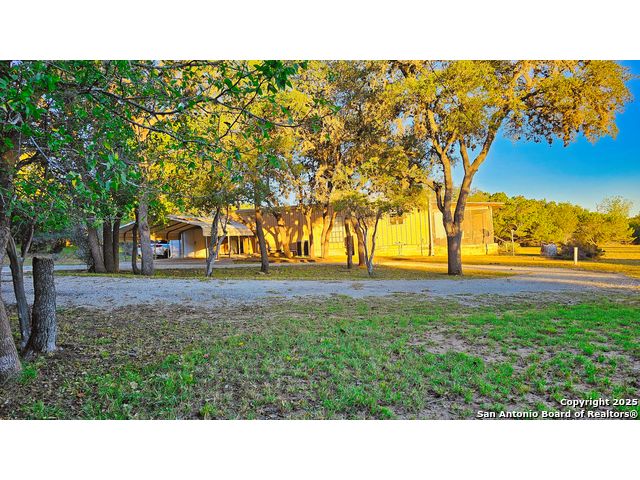 Welcome to your family's next adventure - a place to gather, grow, and make lasting memories on the beautiful Medina River. This 4-bedroom, 2-bath home sits on over 8 riverfront acres with approximately 275 feet of Medina River frontage. All improvements are well outside the FEMA floodplain for peace of mind. Set back from the road, the home rests at the end of a gently sloping, chip-sealed circular driveway, nestled among mature oak trees. Enjoy flat terrain behind the home with panoramic views of the surrounding hills and the serene river. Nature lovers will appreciate the abundance of local wildlife - deer, waterfowl, foxes, and countless bird species call this area home. This property's steel construction, including a metal roof, makes it a forerunner of today's popular hill country barndominium style. Relax on the large screened-in patio, soak in the sunsets, and take in the peaceful beauty of river life. A 10-step metal staircase provides easy access to the water for exploring, kayaking, swimming, or fishing. Currently operating as a successful Airbnb, you can even "try before you buy." Additional features include: * Private water well with 2,700-gallon storage * High-speed fiber internet * Propane gas for the cooktop * Conventional septic system * A spacious shop building / man cave / she shed The river is flowing beautifully - schedule your private showing today and discover the charm of living on the Medina!