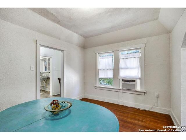 Discover Historic Charm in Vibrant Highland Hills - A Centenarian-to-Be! Nestled in the heart of the vibrant & historic Highland Hills neighborhood, this enchanting 3-bed, 1-bathroom home is a testament to enduring craftsmanship, poised to celebrate its centennial in 2027. Timeless Elegance Meets Modern Practicality. Step inside to discover original hardwood floors, beautifully preserved in the living areas and bedrooms. Newer luxury vinyl plank flooring in the kitchen, bathroom, and utility room offers durability & a touch of contemporary comfort. Throughout the home, high ceilings & an abundance of natural light create an airy, inviting atmosphere, while charming built-in niches and graceful arches add character and architectural interest to every corner. While plumbed for gas, the home is currently set up as all-electric, offering versatile and efficient climate control via window units and a space heater. One of the home's most beloved features is the screened-in front porch, a true haven for "al fresco" dining or nature watching. Mature trumpet vines gracefully adorn the home, attracting a dazzling array of wildlife, including hummingbirds, butterflies, finches, & cardinals. The property further boasts majestic pecan trees, providing bountiful shade and seasonal delights & a towering 60-foot palm tree in the front yard. The Highland Hills neighborhood offers exceptional convenience and connectivity, strategically located with easy access to I-10 and I-37. Walkable Amenities: Stroll to a nearby convenience store and a highly recommended local taqueria. Essentials (Within 1 mile): Access to an HEB grocery store, an Urgent Care facility, a local Movie Theatre, and a community Library. Prime Attractions: Alamodome: 2 mi. San Antonio Riverwalk Access: 2.5 mi, Missions Bike & Hike Trails: 3.5 mi. Beyond the walls, this home in Highland Hills truly offers a unique blend of historic charm, modern comfort, and unparalleled access to the best of San Antonio living.