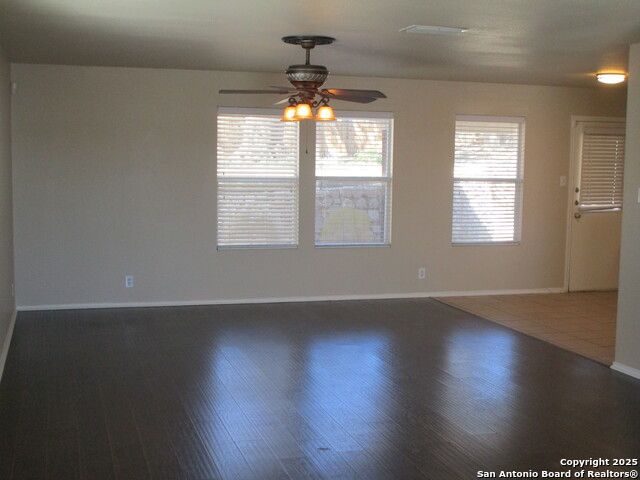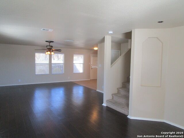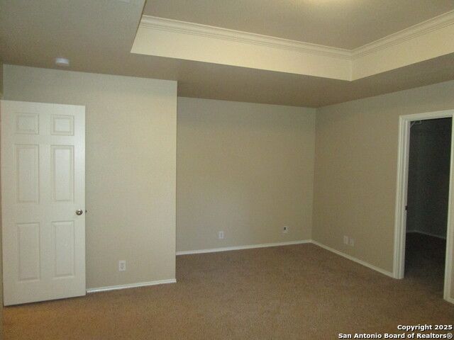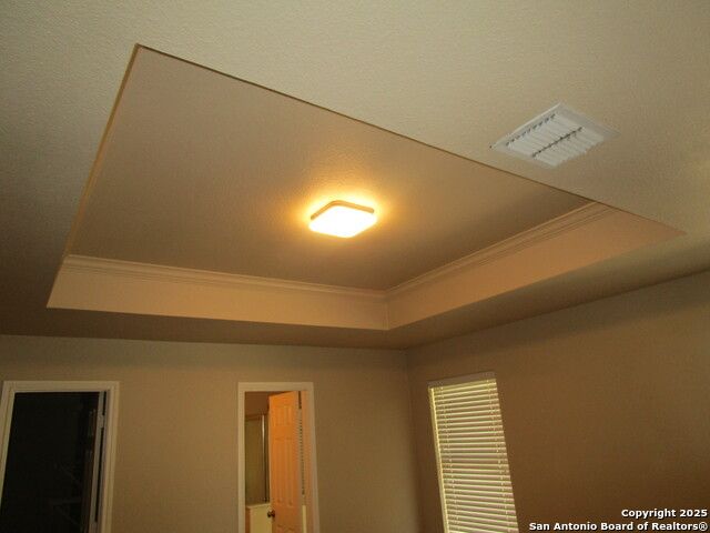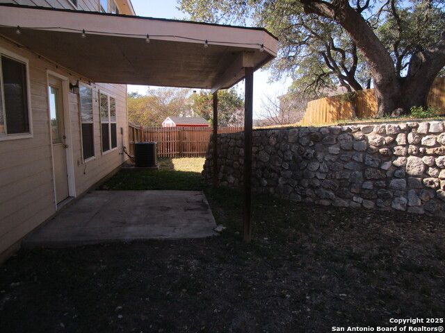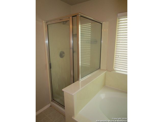 Attractive property in Bulverde Village near Johnson High School awaiting a few finishing touches, Ceramic tile and wood laminate downstairs for ease of maintenance, Nice views or area from upstairs, Loft area upstairs for entertaining, enjoy your morning coffee on the covered patio, Enjoy a relaxing evening in the soaker tub in the primary bathroom, double vanity with separate shower and tub in primary bathroom, stair stepped ceiling with crown molding in primary bedroom, garage door opener and two inch wood faux blinds.