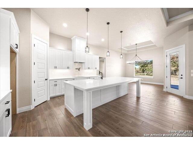### OPEN SAT & SUN 1 to 3 pm 29-30 NOV ### "BRAND NEW & MOVE-IN READY"...Nearly 3000sf 4-Bd PLUS a Study & 3-Bath "Very Custom Ranch Style Hm w/3-Car Epoxied Floored Gar & LOTS of Extras' on a 1-Acre Corner lot in Hondo Ridge Subd..No City Taxes & Low 1.74% Tax Rate....."Very Open & Bright Floorplan" w/LOTS of Oversized Picture Windows for Natural Lighting...Raised Decorative Ceilings, Lots of Crown Molding & Recessed Lighting...8 Tall Doors...Porcelain Type Plank Flooring Thru-Out (No Carpet)... 2-Water Heaters & Water Softener...*HM* has Eat-In Country Style Island Kit w/Custom Cabinets & Hardware,Farmers Sink,Cooktop.Blt-In Oven & Micro,Custom Vent-a Hood,Pot-Filler,tiled backsplash,under cabinet lighting & Walk in Corner Pantry...Living Rm has 12' Tall Beamed Deco Ceiling,2-Lg Picture Windows,Rocked Fireplace & Electrical Floor Outlets....Spacious Utility Rm w/Upper & Lower Cabinets & Storage Closet... MAIN Bd Suite has huge tiled Walk in Shower,Soaker Tub,2-Sinks & 2-Lg Walk-in closets w/Build-In's...2nd BD/Possible In-Law Suite has it's own Bathroom & Walk in closet...BD's 3 & 4 Also have Lg Walk-in Closets...Office/Study/Possible 5th Bd has 8' Tall French Doors,Deco Ceiling & Transom Windows...Huge Covered Patio & Much More...Call 4 Detailed packet of Info...La Vernia ISD,Wilson Country,Low 1.74% Tax Rate w/NO City Taxes...Only $325 a Yr for HOA Dues..COUNTRY LIVING...LOCAL BUILDER...***STAGED PICTURES SHOWING GRASS*** ASK ABOUT BUILDER INCENTIVE