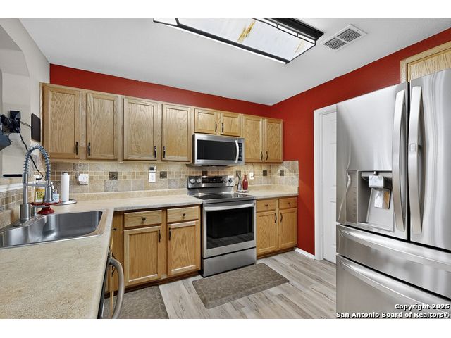 Is there a 3-bed home in Bulverde Village under $280K with upgrades and space to grow? Yes! Welcome to 24222 Waterwell Oaks. This move-in-ready 3-bedroom, 2.5-bath home offers 1,812 square feet of well-maintained living space in the desirable Bulverde Village community. Recent updates include a new HVAC system installed in 2023, along with refreshed exterior paint, laminate flooring, and fencing completed within the past five years. The roof is only seven years old, offering buyers peace of mind on major systems. Inside, the layout features two spacious living areas, a formal dining room, and a flexible upstairs game room perfect for play, work, or guests. The kitchen opens to the living area, creating an easy flow for everyday living or entertaining. All bedrooms are located upstairs, including the oversized primary suite with a walk-in closet and private bath featuring a garden tub, separate shower, and double vanity. Outside, enjoy a covered patio and fenced backyard ready for pets, play, or weekend BBQs. Located in Northeast ISD and zoned for Cibolo Green Elementary, Tex Hill Middle, and Johnson High School. Community amenities include jogging trails, a park, and a sports court. With quick access to TPC Parkway and Bulverde Road, this home is close to shopping, schools, and outdoor recreation. Low HOA fees at $125 semi-annually. Priced at $279,999, this home is an excellent opportunity for first-time or move-up buyers looking for space and value in a prime San Antonio location.