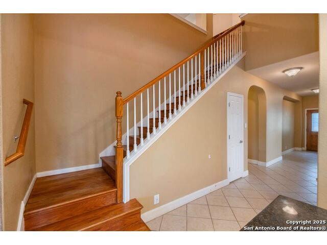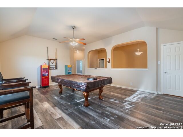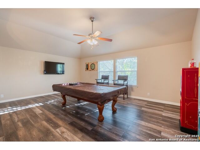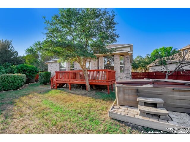 Discover this very spacious 4-bedroom plus office, 3.5-bath home with 3,496 sq ft of living space, perfectly situated on a 0.24-acre cul-de-sac lot in the highly desirable Cibolo Canyon community. The home is vacant and ready for its new owners, featuring a wooden and wrought iron-fenced backyard that backs onto a greenbelt, providing a rare combination of privacy and outdoor appeal. Inside, soaring ceilings, archway interiors, and abundant natural light highlight an open floor plan designed for modern living. The living room features a striking stone-and-brick fireplace, while dedicated spaces for a media room, game room with pool table, and office complement the four bedrooms. The well-equipped kitchen includes an island, breakfast bar, granite counters, and ample cabinetry, making it ideal for both daily living and entertaining. Additional storage is plentiful throughout the home, and the oversized two-car garage with extra space adds convenience and utility. Outdoors include a sprinkler system, a storage shed, and a hot tub, perfect for gatherings, play, or relaxation. Residents enjoy a fantastic community center with a fitness room, two pools, including a lazy river, a playground, and plenty of activities for all ages. The home is also just minutes from Primrose School at Cibolo Canyons, offering added convenience for families. With its location, generous layout, and lifestyle amenities, this home represents a compelling opportunity in San Antonio.