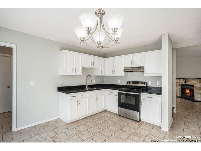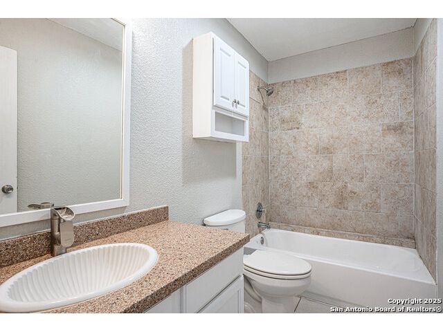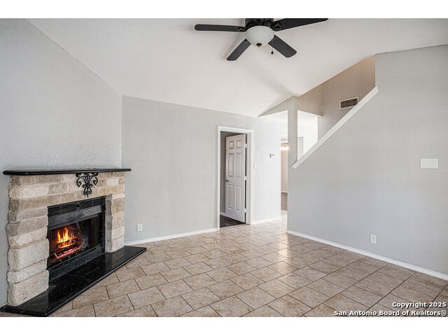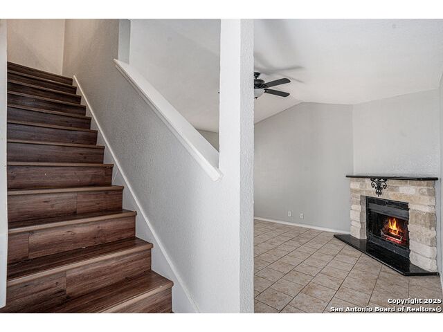 Welcome to this well-maintained and spacious single-story home in a highly desirable subdivision. This charming 4-bedroom, 2-bath residence offers a perfect blend of comfort, style, and functionality for family living. Step into the inviting living room, featuring a stacked stone fireplace that serves as a stunning focal point and provides warmth and ambiance for cozy evenings. Decorative lighting and a cool, designer neutral color palette flow throughout the home, complemented by a mix of tile and wood-look laminate flooring that balances elegance with durability. The eat-in kitchen is bright and welcoming, boasting crisp white cabinets and ample counter space-ideal for everyday meals and entertaining guests. Thoughtful floorplan design places the primary bedroom and bathroom, along with a secondary bedroom, on the main level for convenience and privacy. The remaining bedrooms are upstairs, sharing a full bathroom, making this home perfect for families or hosting guests. Practical features include washer and dryer hookups, ensuring convenience without sacrificing style. Step outside to the spacious backyard, where a mature shade tree creates a serene outdoor retreat, perfect for relaxing, gardening, or entertaining. Situated near shopping centers and essential amenities, this single-family home combines comfortable living with an ideal location. Don't miss the opportunity to make this inviting, move-in-ready home yours!
