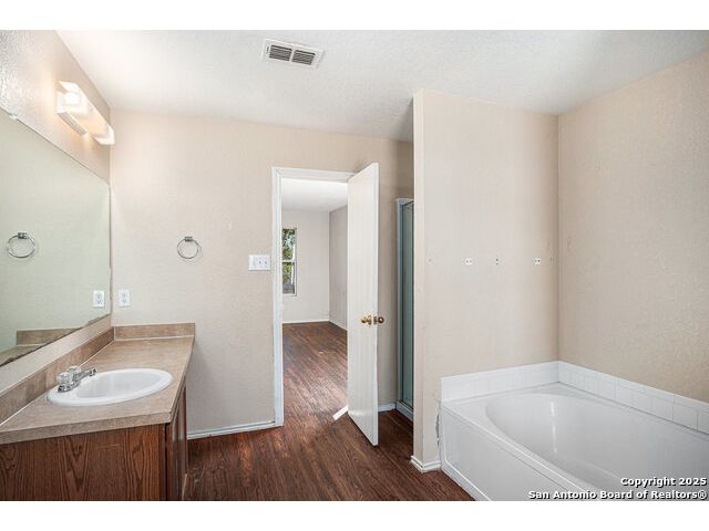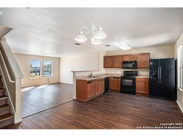 Welcome to this fantastic 3-bedroom, 2.5-bathroom, two-story home and an attached 2-car garage. Upon entering, you are immediately welcomed into the open-concept first-floor living space, where the family room flows seamlessly into the kitchen and dining room. The kitchen is equipped with laminate countertops and black appliances. For ultimate convenience, the laundry room is located on the first floor, just off the garage. All bedrooms, including the primary suite with its attached en suite bathroom, are thoughtfully located on the second floor. The entire home features vinyl flooring throughout for easy maintenance. Situated on a low-traffic street, the property offers a peaceful setting while remaining conveniently located within the SCUC Independent School District and just 15 minutes from Randolph AFB. Schedule your showing today!