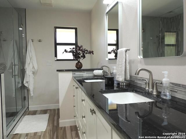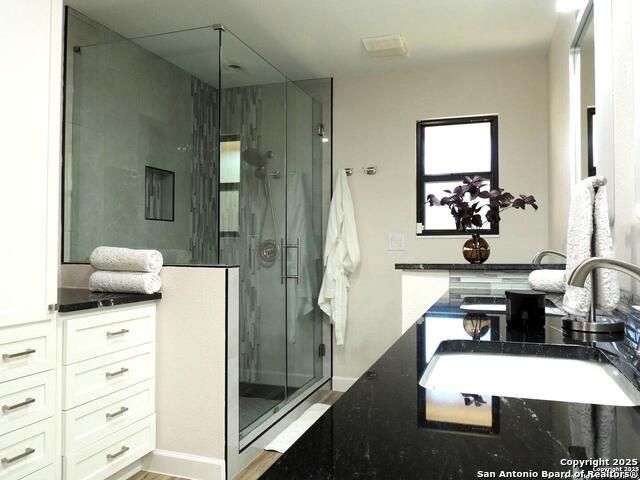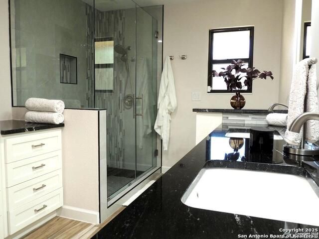 Absolute stunner! This completely renovated 4 bedroom, 3 bath home at the end of a quiet cul-de-sac is a dream come true! Step inside to discover an open, inviting layout designed for both entertaining and everyday living. The stunning chef's kitchen features custom soft close cabinetry, abundant storage, quartz counters, a gas stove and stainless appliances - perfect for gathering with family and friends. The living room offers a warm and welcoming space complete with a gas fireplace, bar sink and wine refrigerator. It flows seamlessly into the dining area and opens to a versatile study, office or flex room, providing options for any lifestyle. Retreat to the primary suite, where French doors lead to the patio and a fully renovated spa-like bath awaits - featuring dual vanities, generous storage and elegant finishes. The secondary bedrooms offer ample closet space, including walk-ins, while secondary baths showcase artisan tilework and upgraded fixtures, creating a luxurious escape for family or guests. The laundry room is both stylish and functional with custom cabinetry and a convenient utility sink. Outdoor living shines with a covered porch, oversized patio and a spacious yard with plenty of room to add a pool - ideal for entertaining or quiet relaxation. Move-in ready and thoughtfully updated from top to bottom, this home blends quality craftsmanship with comfort and style in every detail. Also conveniently located close to award winning schools, world class shopping, dining, entertainment and the airport. Come see it today!