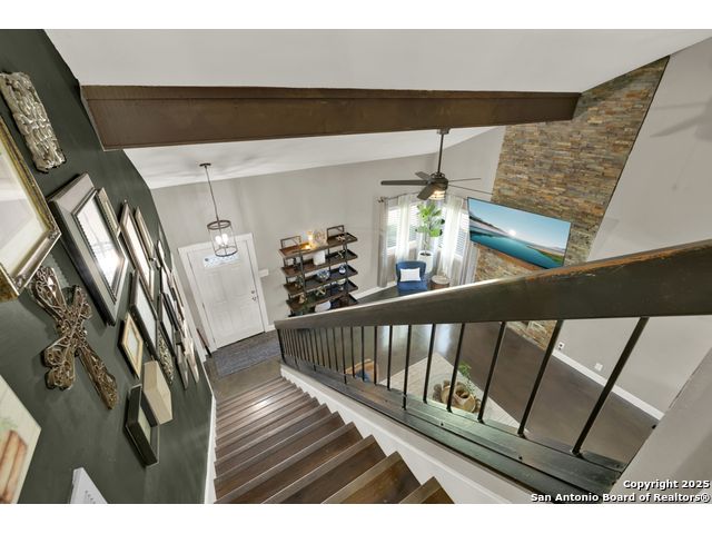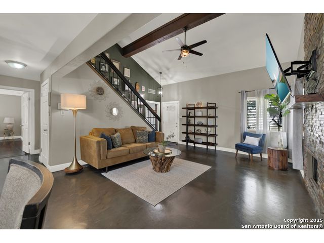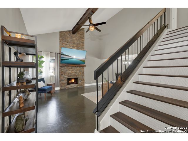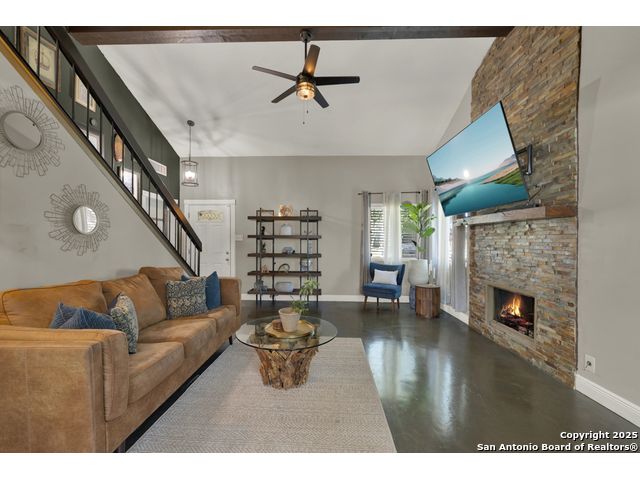 Showpiece home in Great Northwest - updated with precision and care by a family of professional contractors, with quality and longevity in mind. This beautifully maintained 1,958 sq ft two-story home features a fully vented/air conditioned game room/second living area, a wood-burning fireplace, double-pane windows, and stunning epoxy flooring for durability and style. The premium HVAC system, installed in 2022 (valued at over $20K) offers variable-speed indoor & outdoor units, full ductwork replacement- gameroom was also tied into the main HVAC system and fully insulated, UV air purification, upgraded vents, and a smart digital thermostat, that can be controlled via the John Wayne "Home" app - with approximately 7 years of transferable warranty and service plan remaining through John Wayne-including a yearly "tune-up"/ service. Irrigation system was recently audited and operating efficiently. The backyard is ready for everyday enjoyment and gatherings, with a cedar post covered patio, fire pit, and above-ground pool. Thoughtful upgrades, consistent maintenance, and pride of ownership are evident throughout. Conveniently located near Culebra & 1604 with access to NISD schools and Great Northwest community amenities, as well as any and every restaurant or shopping center you could possibly need. This is the home others will be compared to, the place where you want to make memories - this home is truly a rare find!