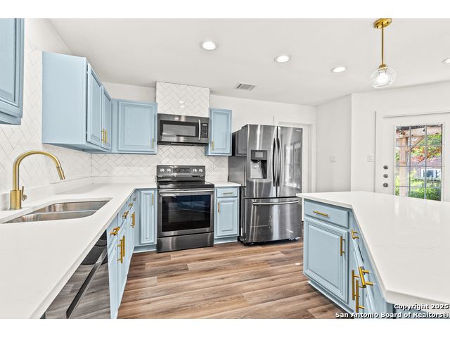 Welcome to this charming 2-story home tucked away on a quiet cul-de-sac in the heart of Schertz, TX. Featuring 4 spacious bedrooms, all with walk-in closets. This property offers comfort, style, and room for everyone. Step inside to an inviting, open layout filled with natural light. The standout kitchen steals the show with its beautiful blue cabinetry, creating a fresh, modern look that blends perfectly with the home's warm atmosphere. Upstairs you'll find generously sized bedrooms and plenty of storage-ideal for growing families or those who love extra space. Enjoy outdoor living on the backyard deck, perfect for weekend grilling, relaxing evenings, or entertaining guests. With a cul-de-sac location, this home offers added privacy and a peaceful setting while still being close to retail, parks, and shopping.