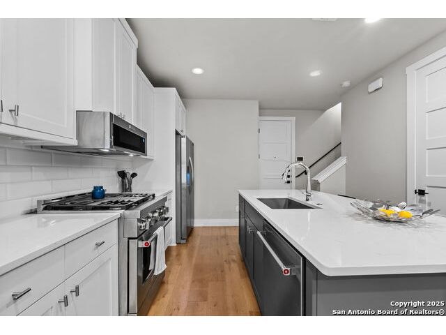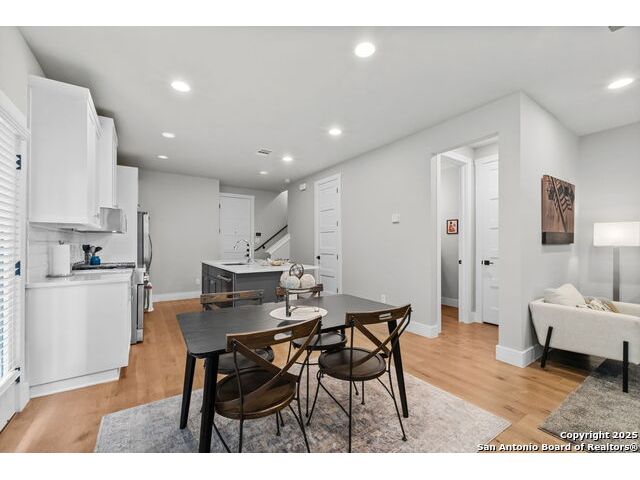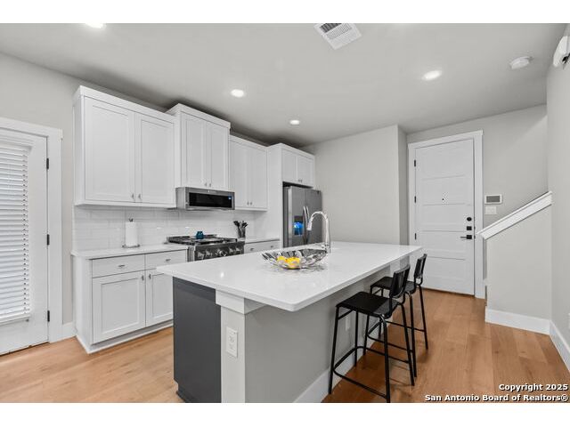 This is undoubtedly one of the most vibrant and dynamic locations in the rapidly developing downtown San Antonio and Tobin Hill area. Experience unparalleled urban living with Imagine Homes, a proud recipient of the National Green Building Award. This exquisite residence boasts 3 spacious bedrooms, each with its own private full bath, ensuring ultimate comfort and privacy. A gourmet kitchen equipped with gas cooking and top-of-the-line stainless steel appliances, including a refrigerator. On the upper level, a fun loft space awaits, offering versatile use for entertainment or relaxation. The crowning jewel of the home is the rooftop deck, which features a built-in fireplace and refrigerator-creating the perfect setting for social gatherings or quiet evenings under the stars. Charming gated side yard with an extra access door, offering both convenient entry and added security. The two car garage is a feature rarely available and highly sought after for urban dwellers. Located just six blocks from the Historic Pearl and walkable to every convenience and entertainment you'd want this remarkable property offers the perfect blend of luxury and convenience at an attainable price. Investor buyers? The property has previously been used as a licensed short term rental, and can be again.