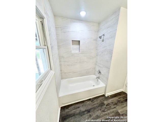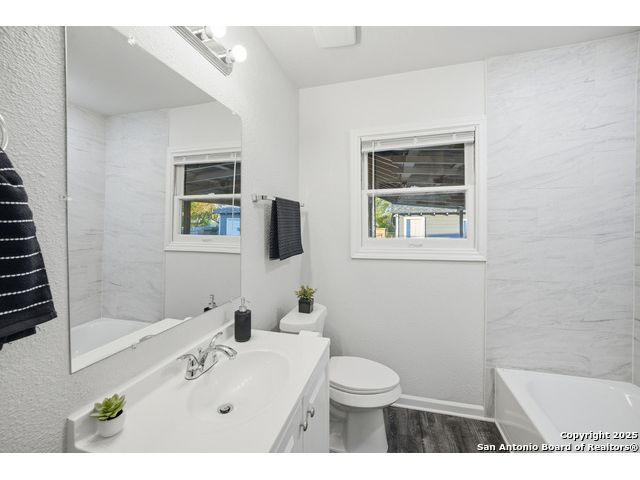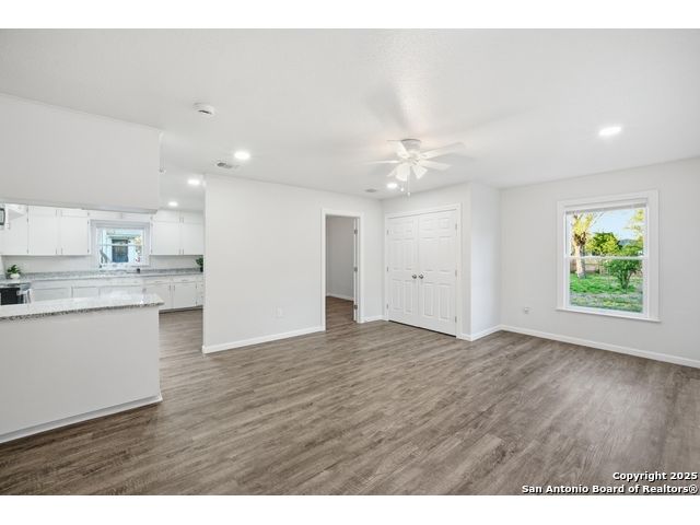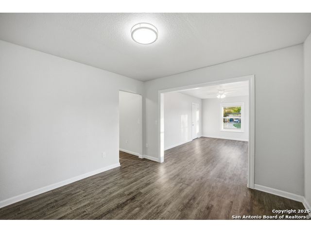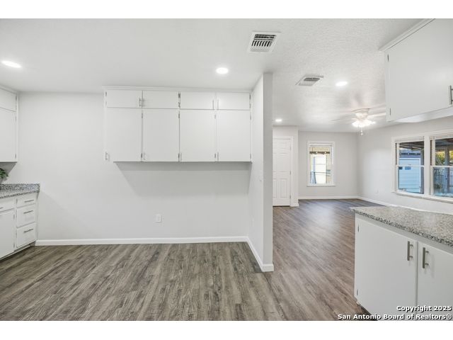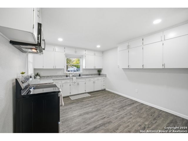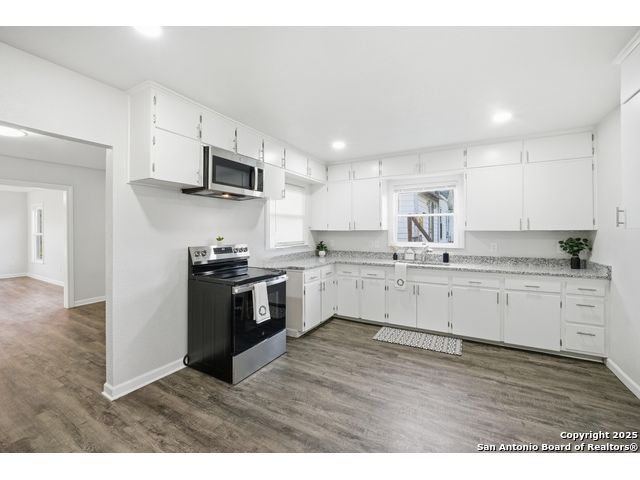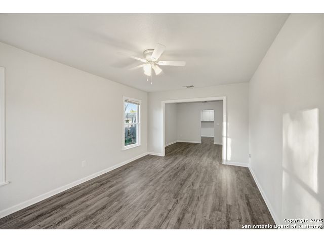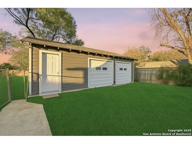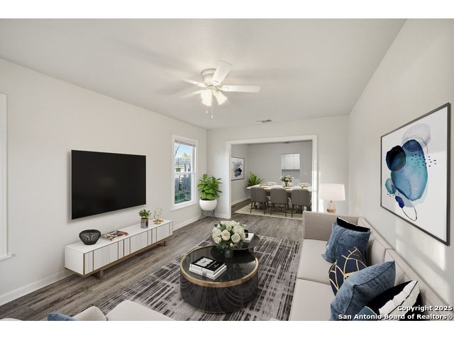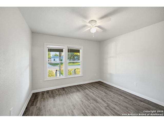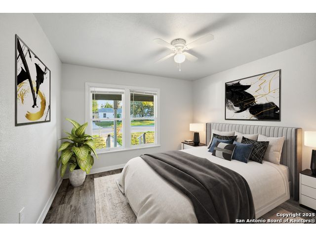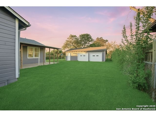 Beautifully updated one-story home on a rare 0.3151-acre lot! This move-in ready 4 bed, 2 bath features new luxury vinyl flooring, fresh paint, modern finishes, and a fully updated kitchen with granite counters, stainless steel stove/microwave, and abundant cabinet space. Both bathrooms are beautifully remodeled with sleek tile surrounds and updated vanities. Spacious bedrooms with ceiling fans throughout. Enjoy a huge fully fenced backyard with mature trees, a covered patio, and a detached 2-car garage. Conveniently located near IH-35, Loop 410, Hwy 90, Brooks City Base, Mission San Jose, Palo Alto College, and Texas A&M-San Antonio. Plenty of room for outdoor projects, RV/boat parking, or entertaining. Move-in ready and minutes from key amenities!