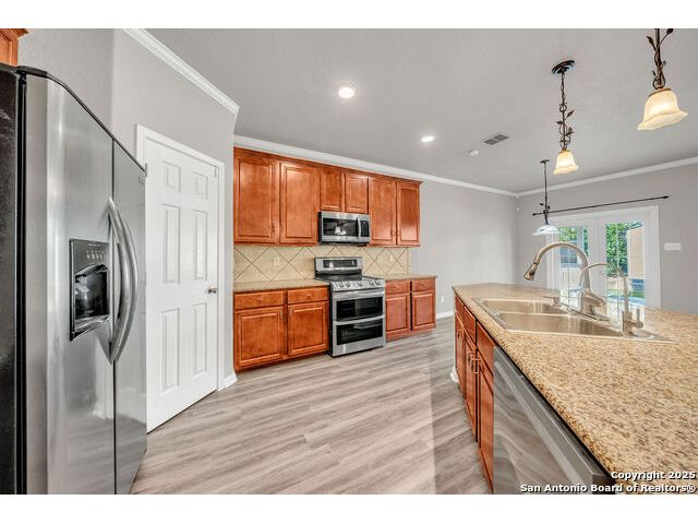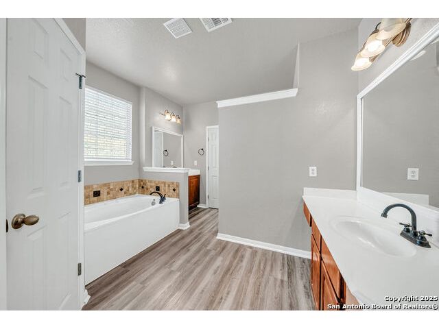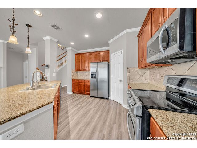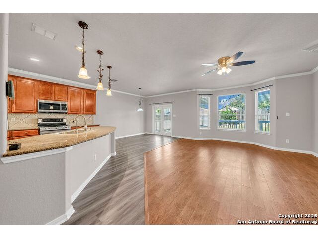 Welcome to Windcrest living at its finest! This beautifully maintained 4-bedroom, 2.5-bath home offers space, comfort, and charm in one of San Antonio's most beloved neighborhoods. Step inside to discover a bright and open family room that flows seamlessly into the kitchen and dining area-perfect for gatherings and everyday living. The kitchen features a center island, custom extended pantry, and plenty of prep space for home chefs. A formal living/dining room adds elegance, while a game room and private study offer versatility for work and play. The primary suite is conveniently located downstairs, featuring a jetted tub, walk-in shower, and a custom-shelved walk-in closet. Upstairs you'll find the secondary bedrooms, full bath, study, and game room-ideal for spreading out. Step outside to your own backyard oasis complete with a spacious patio and deck, surrounded by mature trees! This home blends comfort and functionality with a serene, well-established setting. Don't miss your chance to own a piece of Windcrest charm-schedule your showing today!