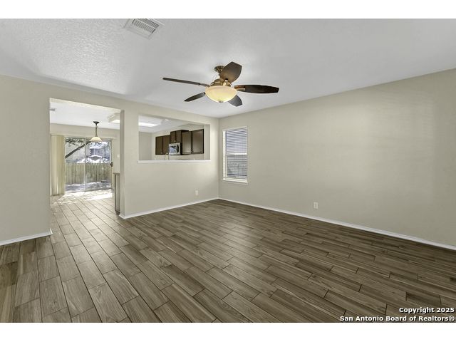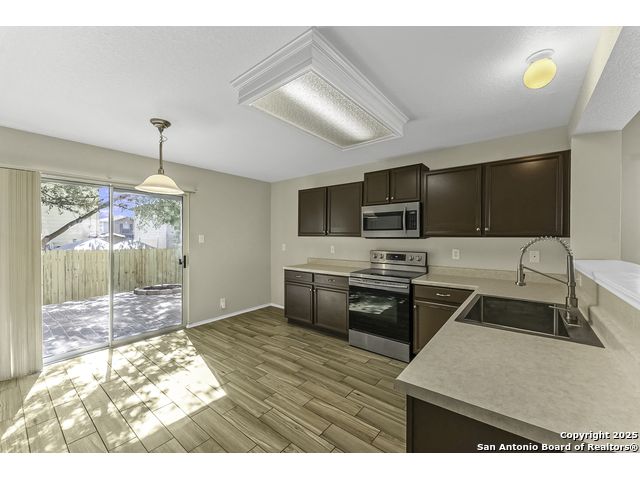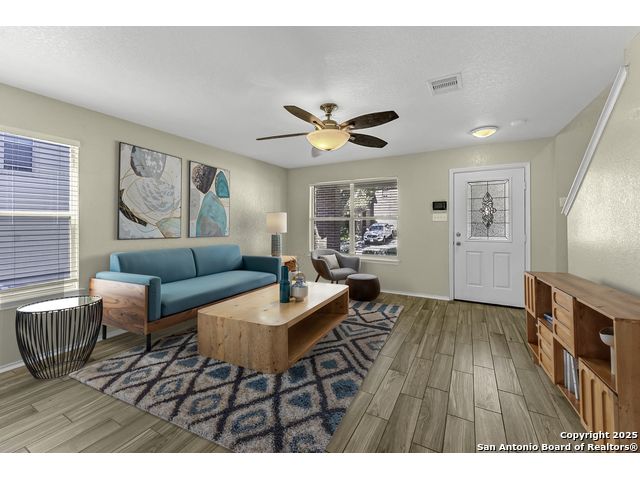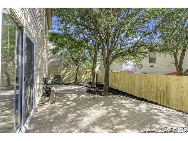 Welcome to this charming, move-in ready 3-bedroom, 2.5-bath home in Westover Crossing! This well-maintained property offers the perfect blend of comfort and convenience. The first floor features an open-concept layout ideal for everyday living and entertaining, complete with an eat-in kitchen, walk-in pantry, and convenient half bath. Enjoy beautiful wood-look tile flooring, stainless steel appliances, and a deep stainless steel sink that adds both function and modern appeal. Upstairs, all bedrooms are thoughtfully arranged, with the large primary bedroom featuring a spacious walk-in shower and walk-in closets. This level also includes upgraded carpet with extra padding and a laundry room for added convenience. Enjoy your backyard oasis, complete with a beautiful brick patio perfect for dining, relaxing, or entertaining, all shaded by oak trees and surrounded by mature mountain laurels. Recent updates provide peace of mind, including a new roof (2025), HVAC (2023), water heater (2021), and privacy fence (2025). Ideally situated near SeaWorld, HEB, Costco, NW Vista, and JBSA Lackland, with easy access to Loop 1604 and Hwy 151, this home offers a perfect combination of modern updates, thoughtful design, and a prime location. Don't miss out on this one!