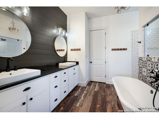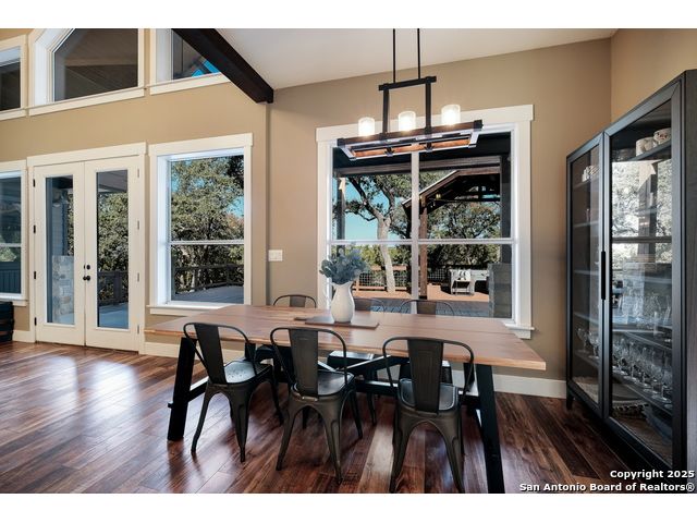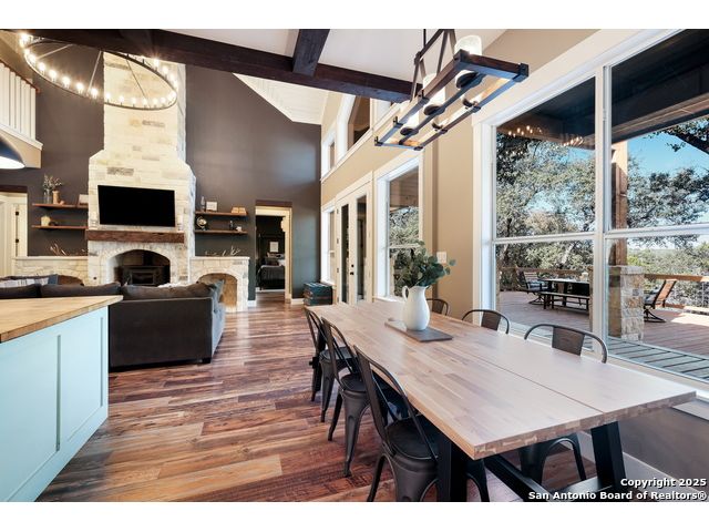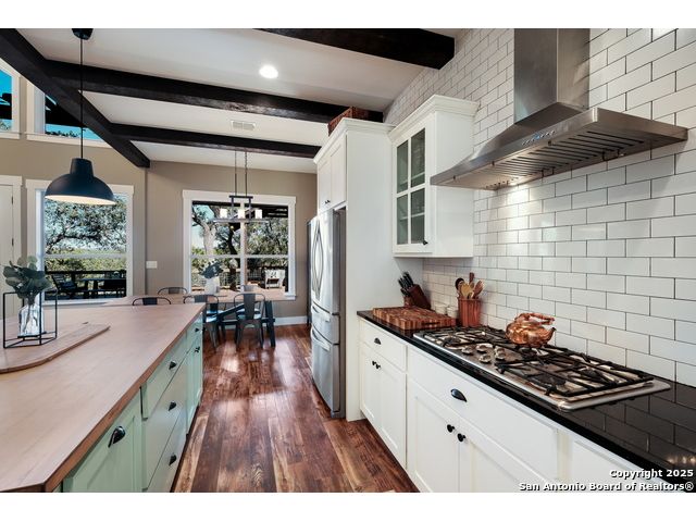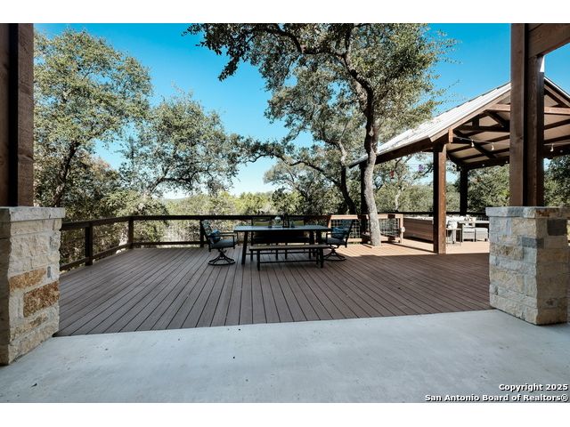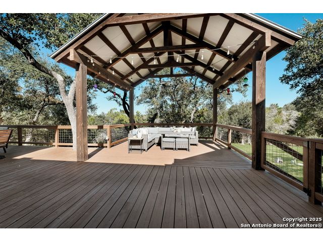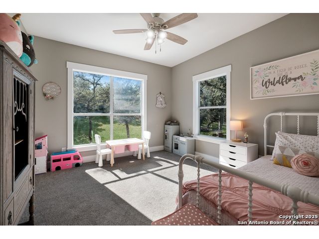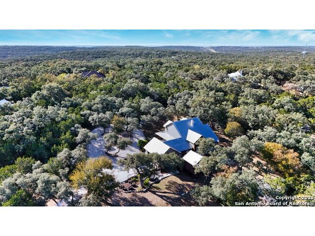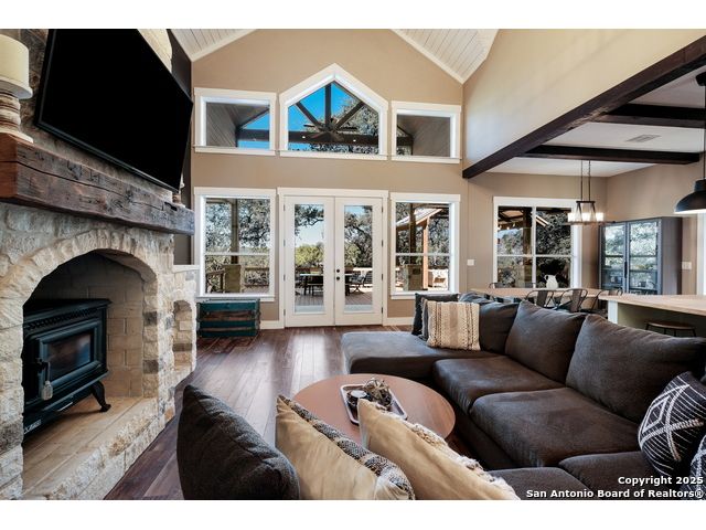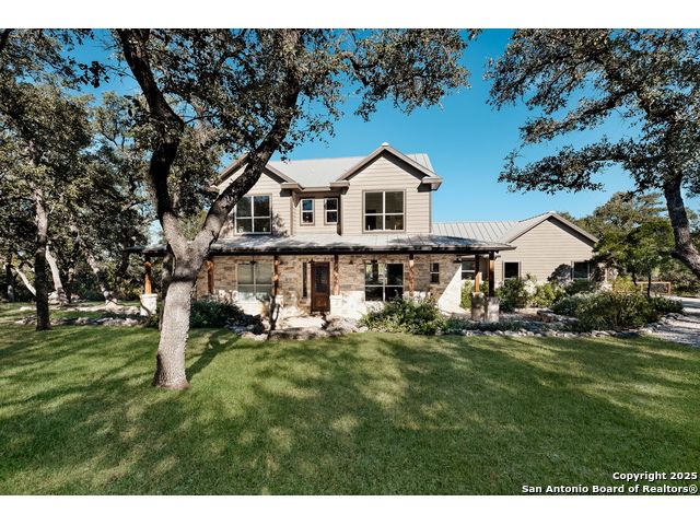 This one-of-a-kind property combines the best of Hill Country charm with thoughtful upgrades at every turn. Set on 4.85 acres and back nearly 600 feet from the road for complete privacy, this home welcomes you with hill country views, expansive covered porches, freshly painted exteriors, and over 1,000 square feet of outdoor living space designed for gathering and unwinding. Inside, custom wood ceilings, exposed beams, and an oversized chandelier set the tone for a home that feels refined yet relaxed. The full masonry fireplace with a wood stove creates a cozy focal point for family nights, while the dedicated movie room brings big-screen comfort right to your doorstep. Outside, you'll find everything you need for both play and peace - a cabana-covered deck, a custom fire pit area, a stock tank pool with pump, and a large playground for the kids. Practical features make life easier too: spray foam insulation in the house and garage, a newly serviced septic and water softener, and a full 250-gallon propane tank ready for use. The oversized insulated garage (20x8 door) and multiple attic storage areas offer plenty of space for tools, toys, and gear. With a private well, 2,500-gallon storage tank, gutters, and a recently serviced setup from top to bottom, this property is as efficient as it is beautiful - a perfect balance of luxury living and laid-back country comfort.