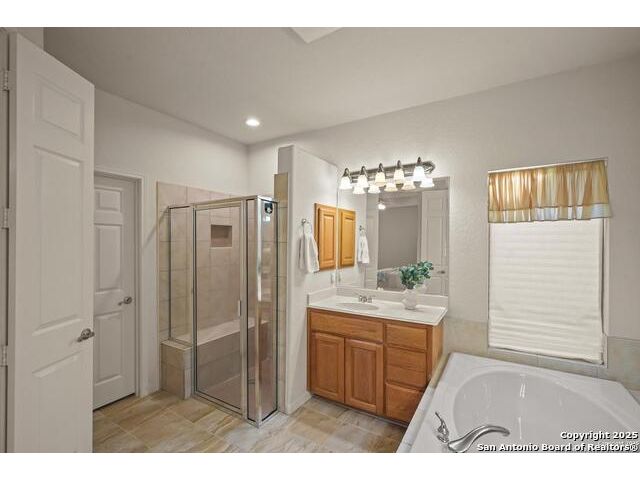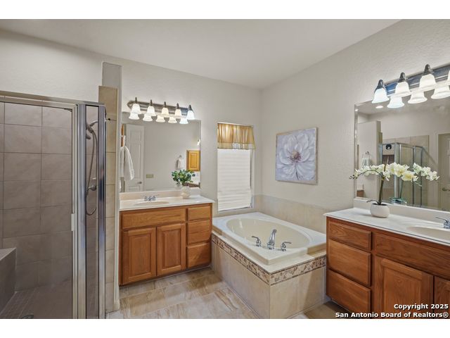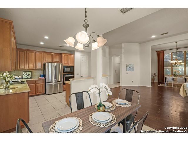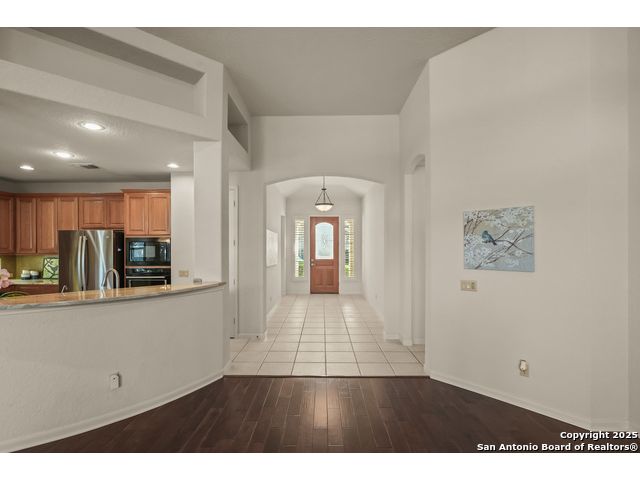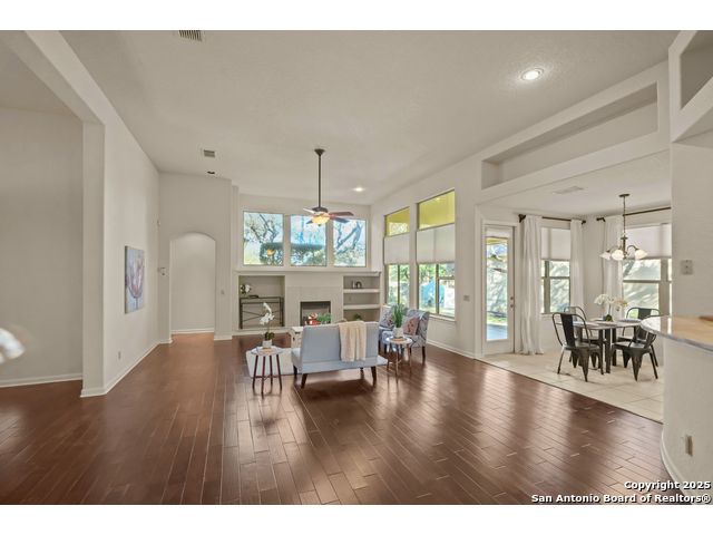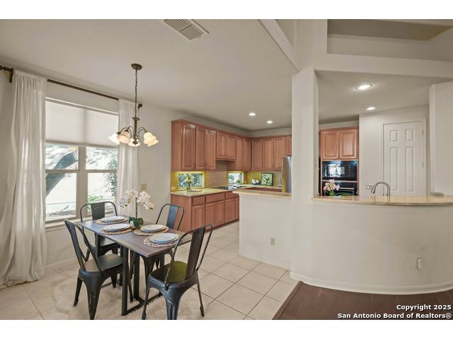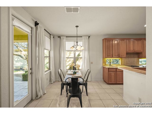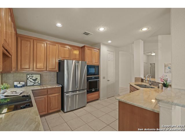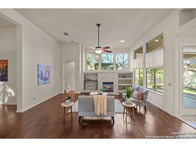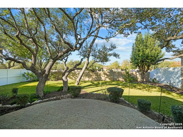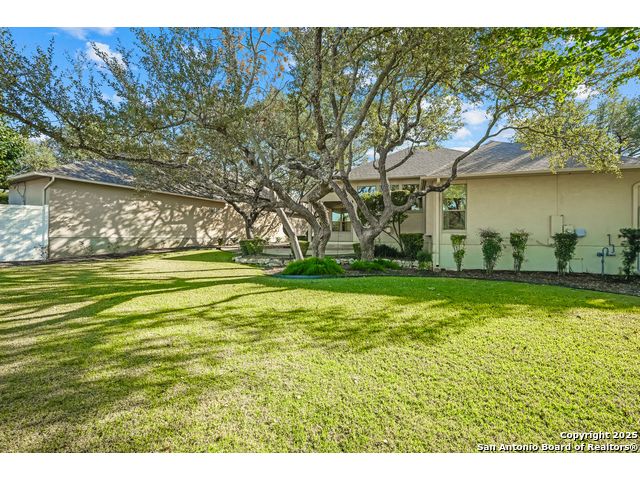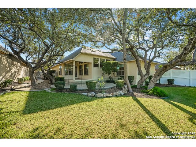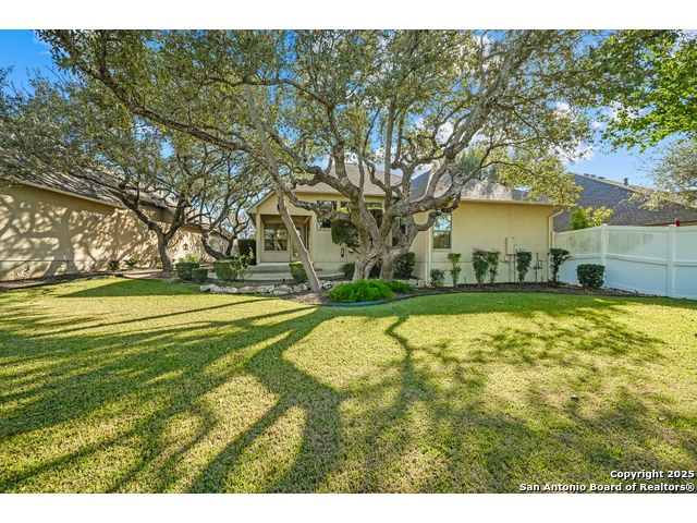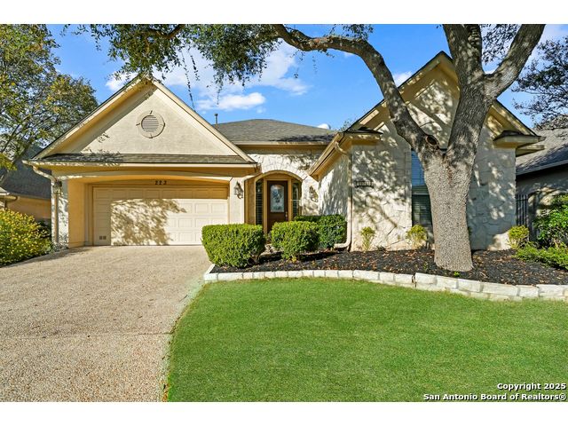 Absolutely gorgeous luxury garden home located in highly desired guarded + gated Reflections section of The Heights at Stone Oak. While the photos are great, the home shows even better in-person! The open and spacious floor plan features soaring ceilings and large windows that fill the home with natural light, and the layout is ideal for relaxing or hosting a few friends with the kitchen, living area, and dining room flowing seamlessly together. The gourmet kitchen offers abundant storage, marble countertops, a newer refrigerator from 2023, and the option to add a gas cooktop since the space is already plumbed for it. The primary retreat is generously sized with tray ceilings, a large walk in closet, and a spa like bath with an oversized shower and soaking tub. There are two versatile secondary bedrooms that offer flexibility for an office, guest room, or creative space. Additional highlights include a new roof from 2023, new carpet (11/25), foam insulation for energy efficiency, a fireplace, a water softener, gutters, and an oversized two car garage with extra storage and a convenient exterior door to the backyard. The backyard feels like a peaceful park with shade from the mature trees, a spacious covered patio, and the perfect spot for morning coffee, complemented by a charming flagstone walkway to the front yard. The Reflections community offers low maintenance living with the HOA covering basic front yard care like mowing, bush trimming, and periodic mulch, plus the added peace of mind of two guarded entrances into The Heights and the additional gated entrance into Reflections. The fantastic neighborhood amenities include a junior Olympic size pool, tennis courts, a basketball court, and a private clubhouse. The location is unmatched with quick access to the boutique HEB, HEB Plus, Stone Oak hospitals, shopping, dining, the 250 acre Stone Oak Park, Panther Creek dog park, and nearby golf at The Club at Sonterra, Canyon Springs, the JW Marriott, and the TPC course. This is a home and community people wait for, offering convenience, privacy, and an effortless way of living. WELCOME HOME!