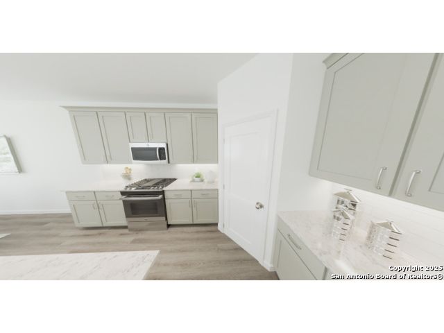 This two-story home perfectly blends style, comfort, and functionality for everyday living. The exterior combines brick and stone with one-side masonry for timeless curb appeal. Inside, the open layout connects the family room, dining area, and kitchen, featuring a spacious island, self-cleaning oven, and walk-in pantry for effortless meal prep and gatherings. A secondary bedroom downstairs adds flexibility for guests or multigenerational living. Upstairs, the primary suite offers a garden tub, separate shower, and dual vanities, while secondary bedrooms each feature walk-in closets. The generous loft provides space for relaxing, play, or a media corner. Large windows fill the home with natural light, creating a welcoming atmosphere. Outside, the covered patio and privacy fence make the backyard perfect for dining or quiet evenings, and with no rear neighbors, it offers rare seclusion. Modern features and versatile spaces make this home both beautiful and functional. This home is part of our Milan Collection - effortlessly chic with a modern European edge. Cool grays, smooth ceramics, and bold decorative accents create a gallery-like feel for artful living. It's sleek yet warm, refined yet welcoming, and always ready for quiet evenings or vibrant gatherings. Milan is where contemporary design meets everyday comfort in perfect harmony. This home is in Hennersby Hollow, with easy access to Hwy 90, Jungman Rd., major employers, SeaWorld, shopping, and top Medina Valley ISD schools. Community amenities include a pool, lazy river, playground, and activity lawn.