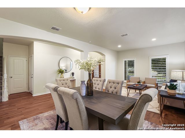 Impeccably maintained 5-bedroom, 4.5-bathroom home located in the highly sought-after gated community of Presidio. This exceptional property offers a rare fully finished basement complete with its own living room, kitchen, bedroom, full bathroom, and private outdoor access-perfect for guests, multi-generational living, or a private retreat. The main level features two spacious living areas and two dining areas, along with a luxurious primary suite that includes a walk-out balcony boasting stunning city views. Upstairs, you'll find a generous flex/game room and three additional bedrooms-one with an en suite bath and the others connected by a convenient Jack-and-Jill layout. Residents of Presidio enjoy access to a walking trails, a fabulous community pool and entertainment area, ideal for gatherings and relaxation. Perfectly situated near Loop 1604, IH-10, UTSA, La Cantera, and Fiesta Texas, this home offers an exceptional blend of space, comfort, and convenience in one of San Antonio's most desirable gated communities.
