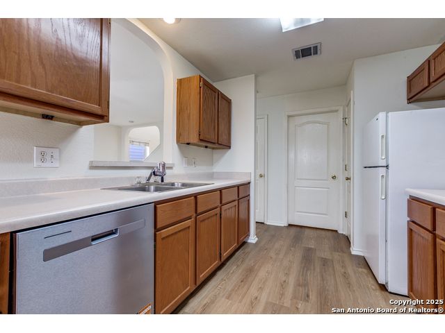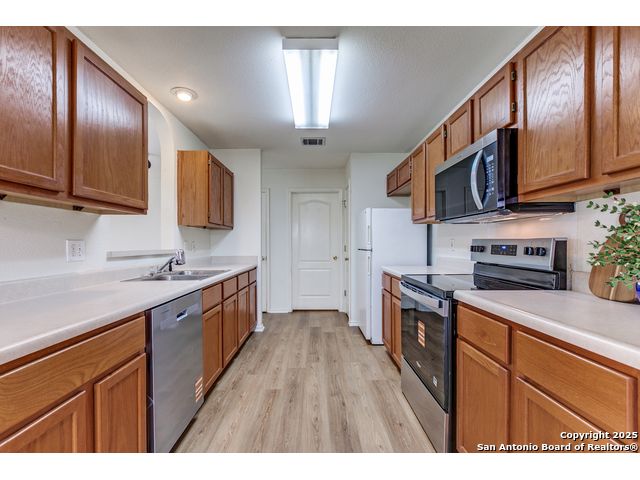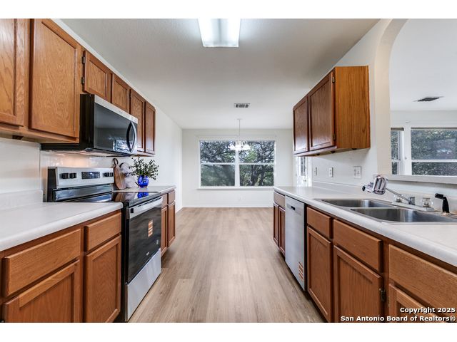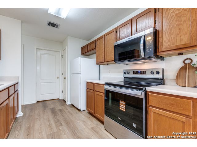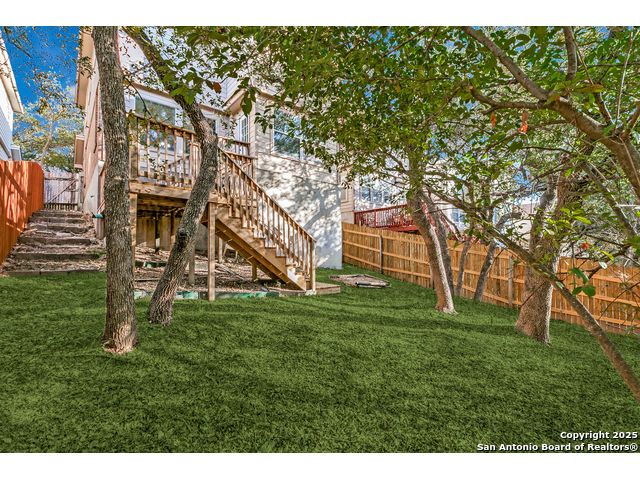 Welcome to this gorgeous recently remodeled versatile 3-bedroom, 2.5-bath home, perfectly situated in a pristinely maintained subdivision known for its serene, peaceful atmosphere. Enjoy the value and efficiency of very low HOA fees! This home offers exceptional space with 2 distinct living areas-one downstairs and a massive, flexible space upstairs, perfect for a game room, media center, or home office.Step outside to your private oasis: a relaxing deck shaded by mature trees and backed by a lush green space with absolutely no rear neighbors, ensuring ultimate tranquility. Inside, you'll find an open, bright plan featuring updated, freshly painted, sleek flooring throughout (no carpet!) and a kitchen with recently replaced stainless steel appliances (stove, microwave, dishwasher).Conveniently located near the Medical Center, USAA, shopping, and dining, this home delivers a rare combination of comfort, privacy, and exceptional value in a highly desirable, quiet community.