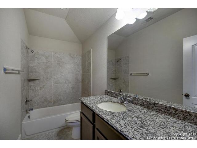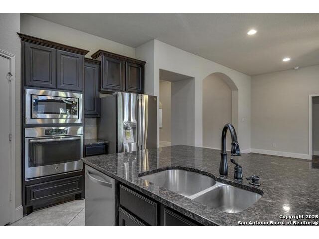 Stunning 4 bed 3 bath one story home with study, media room, & guest suite in highly sought after Bella Vista subdivision. This home looks & feels brand new. Wood tile floors in family room and dining room, with tile at entry and wet areas, and carpet in spare rooms. Very open floor plan, combined with 12' ceilings, floor to ceiling windows, oversized large kitchen, spacious dining room & covered patio scream for entertaining! Split floor plan gives ultimate privacy for guests! Tons of natural light, with large open spaces. Close proximity to highways, military bases, and shopping. Exceptional oversized, one story, Perry Home; with 3000 square feet. Don't miss the finished primary closet! This home is move in ready!