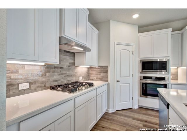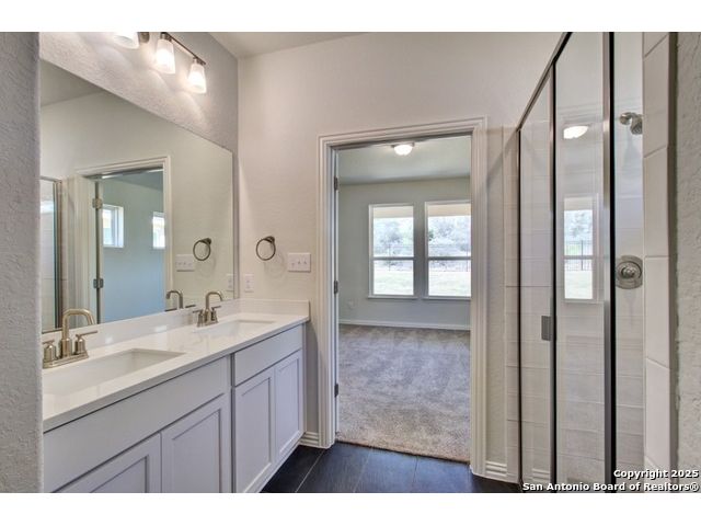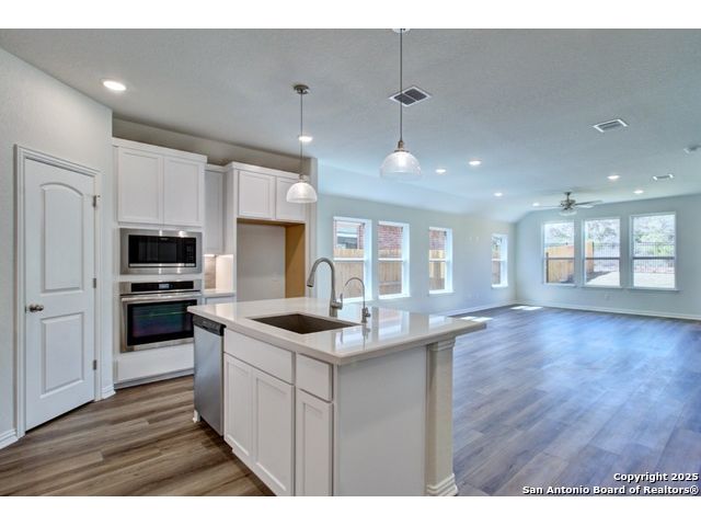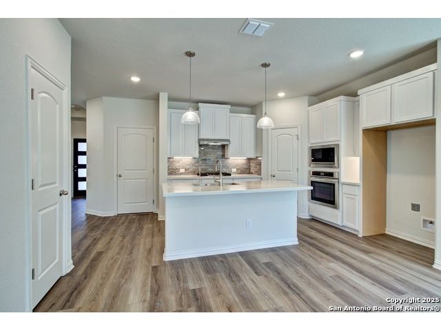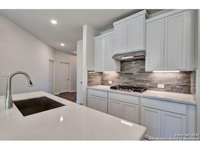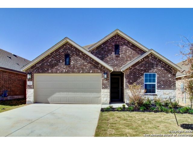 Welcome to the Bali plan by DRB Homes, a thoughtfully designed single story home offering 3 bedrooms and 2 bathrooms. This beautiful home features an inviting open concept layout with modern finishes and comfortable living spaces throughout. The kitchen is a true centerpiece, featuring 42 inch cabinets, stainless steel appliances with gas cooking, a center island, engineered marble countertops, and a corner pantry providing ample storage. The owner's suite is a relaxing retreat with abundant natural light, a dual vanity, and an enlarged recessed ceramic tile shower. The nearby laundry room adds everyday convenience and functionality. Two additional bedrooms offer flexibility for guests, family, or a home office. Enjoy outdoor living on the extended covered patio, perfect for dining, entertaining, or simply enjoying a quiet evening. Located in beautiful New Braunfels, this home offers easy access to I 35, providing quick connectivity to shopping, dining, and local attractions. With its thoughtful design, quality craftsmanship, and desirable location, the Bali plan offers the perfect blend of style and comfort for modern living. Experience the best of New Braunfels living in a brand new DRB Home that is ready to welcome you.