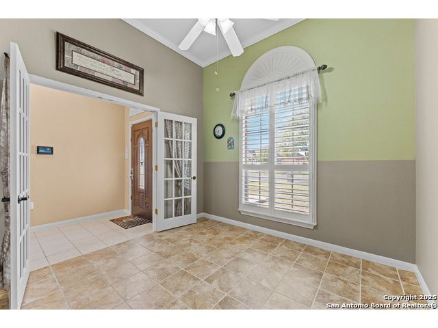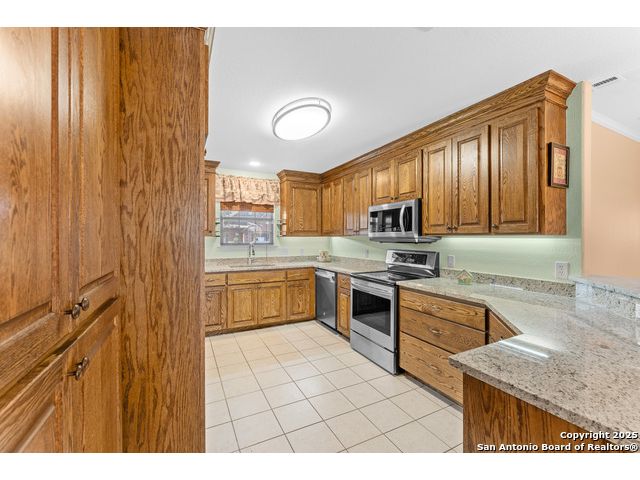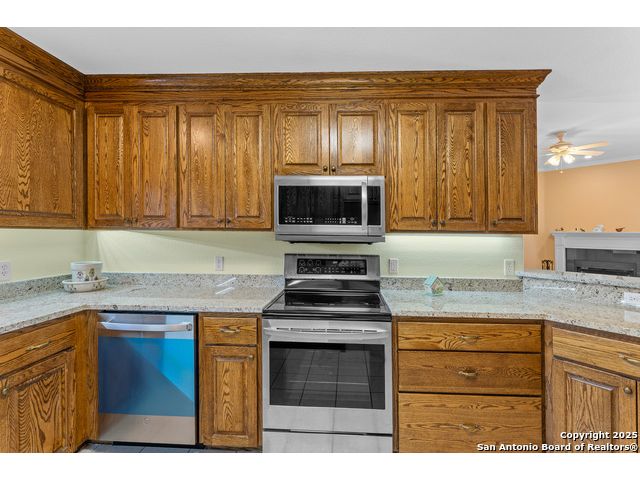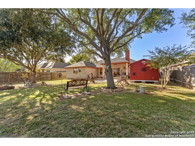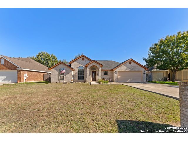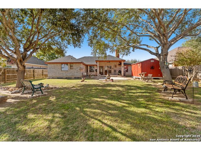 Beautifully Maintained All-Brick Home with Office on Seguin's East Side! This charming 3-bedroom, 2-bath home plus office shows pride of ownership throughout. Recent updates include a new Duration roof (April 2025) with a 5-year transferable warranty, new front door, new dishwasher, and new granite countertops in the kitchen. The A/C unit was replaced in 2018 and includes a transferable 10-year parts warranty valid through 2028. Inside, you'll find tile and laminate flooring, a wood-burning fireplace, and a kitchen with a breakfast bar and abundant original cabinet storage. The primary suite features a large walk-in closet, double vanities, a walk-in shower, and a separate soaking tub. A private office with French doors provides an ideal workspace. The home also offers a nice-sized laundry room inside washer and electric dryer connection. The beautifully maintained backyard includes mature oak trees and a 10x12 Premier Ranch Tuff Shed with electricity. All patio furniture, BBQ pits, all backyard items, and the TVs inside the home will convey. Additional features include a 2-car attached garage and an insulated attic. Located in an established neighborhood on the East Side of Seguin, this home is walking distance to Jim Barnes Middle School and Koenecke Elementary, with convenient access to IH-10, SH-130, and New Braunfels.