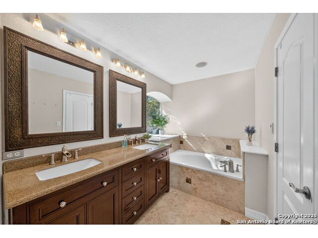 Stunning 5-Bedroom Home in Gated Forest Ridge, Schertz Located in the prestigious gated community of Forest Ridge, this elegant 5-bedroom, 3-bath home offers timeless style and modern comfort. Surrounded by mature oaks and meticulous landscaping, the property welcomes you with impressive curb appeal and a spacious open floor plan. The interior showcases high ceilings, granite countertops, and a gourmet kitchen complete with custom cabinetry and a built-in wine fridge. A full guest suite downstairs provides the perfect setup for visitors or multi-generational living. Upstairs, the primary suite serves as a true retreat featuring a luxurious spa-like bathroom with heated floors, dual vanities, and a generous walk-in shower. Enjoy peaceful outdoor living beneath the shade of mature oak trees and beautifully maintained grounds. Conveniently located near top-rated schools, shopping, and major commuter routes, this home blends elegance, comfort, and location in one perfect package.