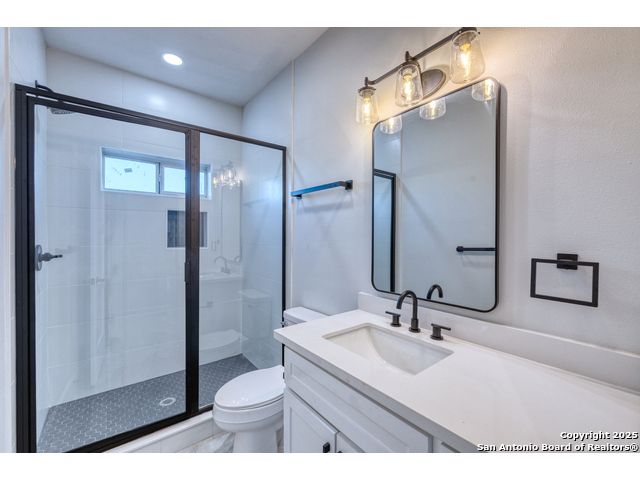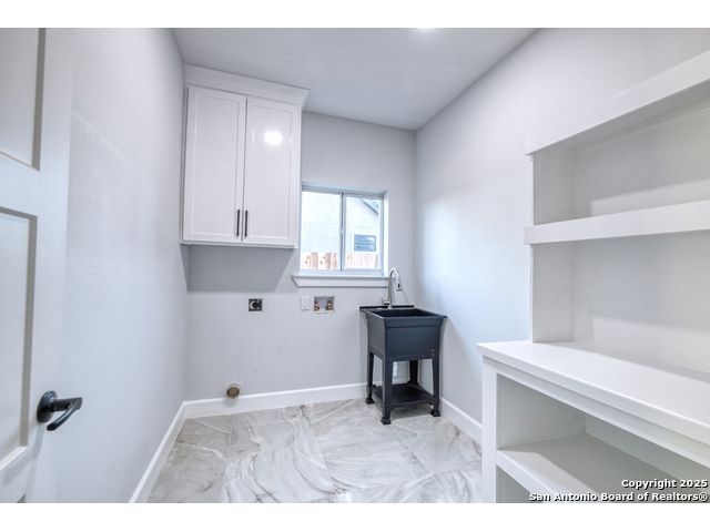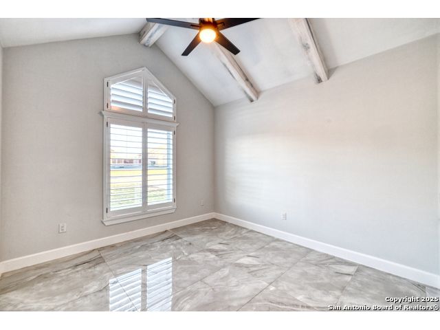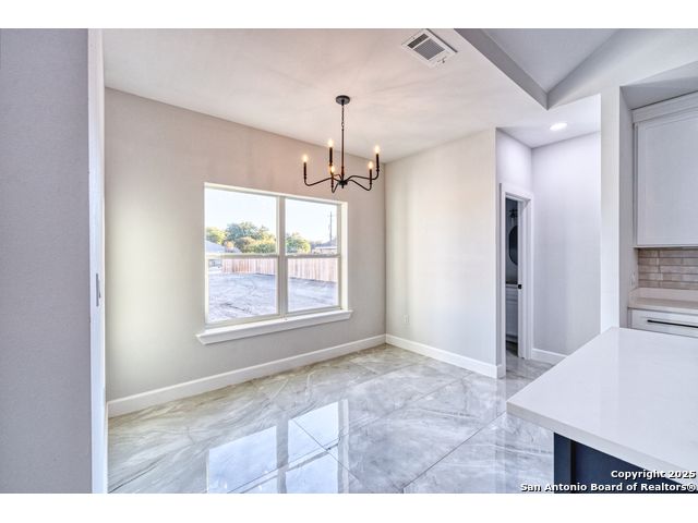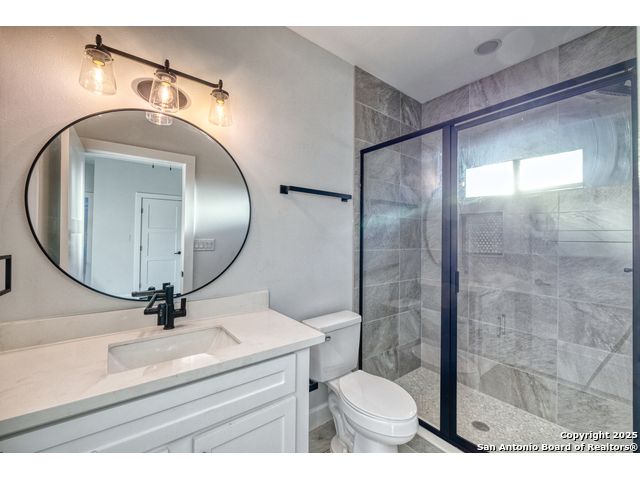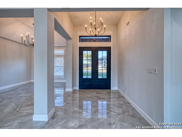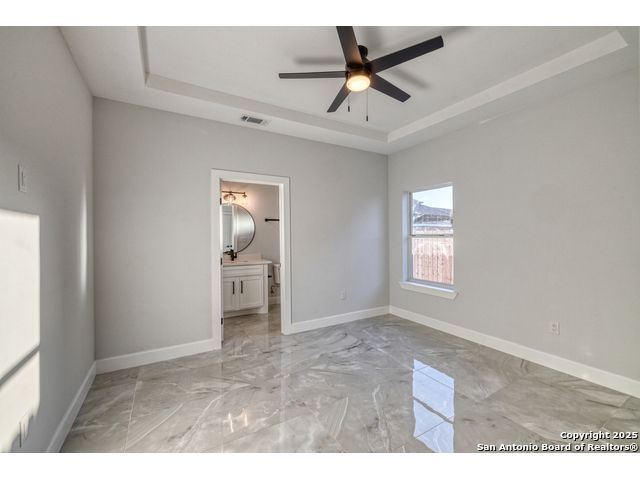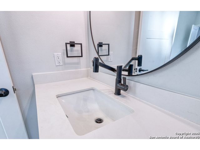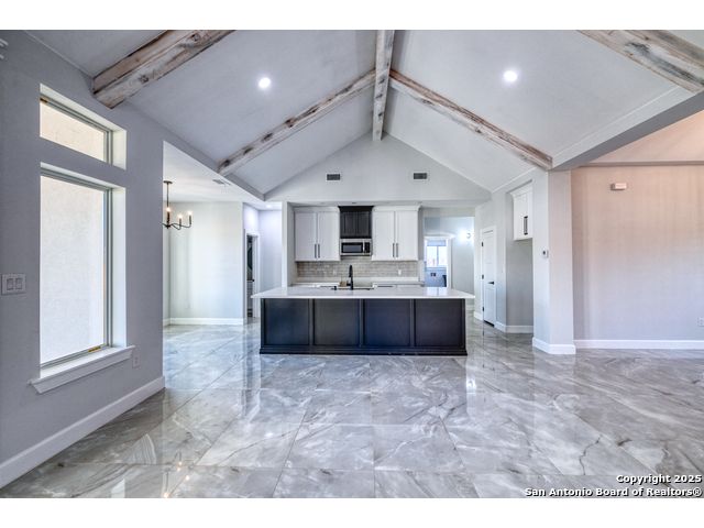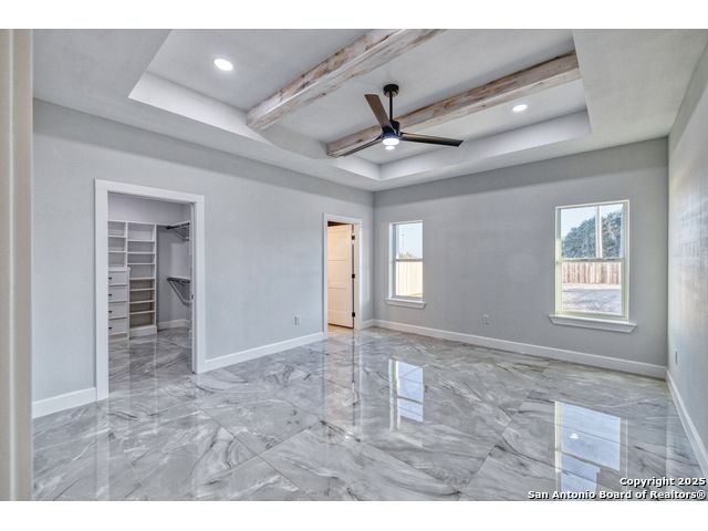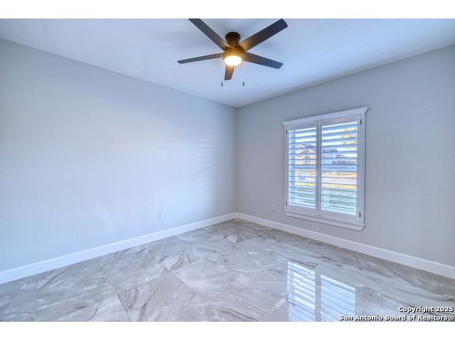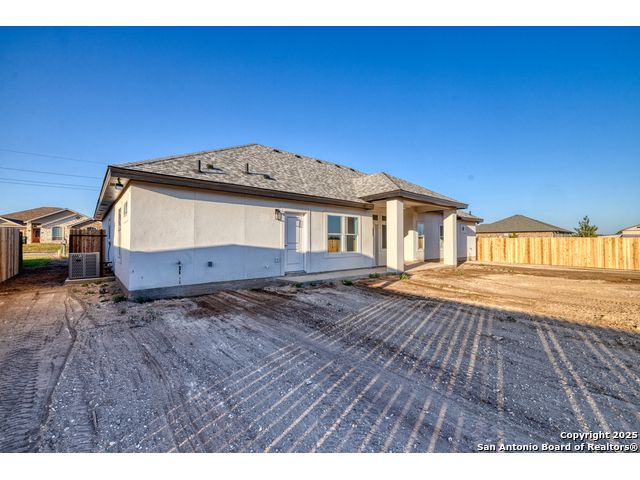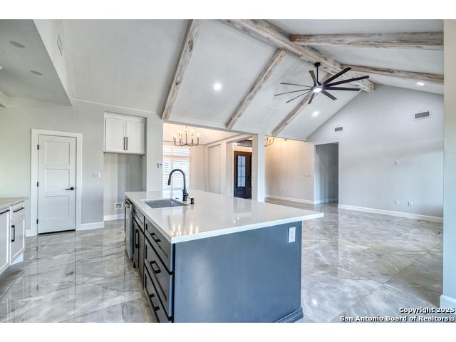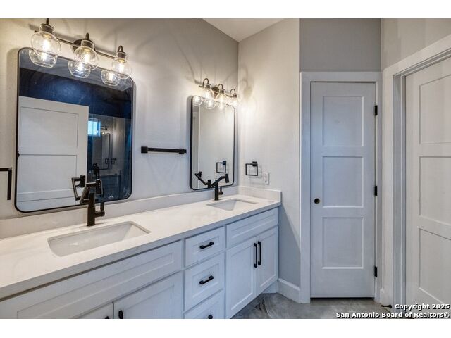 This newly completed custom home in one of Uvalde's most desirable new neighborhoods offers a thoughtful blend of modern design, quality craftsmanship, and everyday comfort. With 4 bedrooms, 3.5 baths, and approximately 2,280 sq. ft. of living space, the layout centers around a highly sought-after open concept that brings the kitchen, dining, and living areas together in one inviting setting. The interior is finished with ceramic tile throughout for a clean, cohesive look and easy maintenance. A 10-foot quartz island anchors the custom kitchen, complemented by custom cabinetry, a beautifully tiled backsplash, and a dedicated dining area plus a breakfast nook. A convenient half bath sits just off the kitchen and also opens to the back patio-an ideal setup for entertaining or future outdoor additions like a pool. Large French doors lead to the covered back porch, creating a great place to unwind in the evenings. The primary suite features a coffered ceiling with white-washed exposed beams, a spacious walk-in closet with built-ins, and a stunning bath complete with dual vanities, a custom tile shower with frameless glass, and a private water closet. Two guest bedrooms include plantation-style shutters, generous walk-in closets with built-in storage, and easy access to a beautifully finished guest bath with quartz counters and a custom walk-in shower. Across the main living area, a second master suite offers flexibility for multigenerational living, extended guests, or a private home office. Additional highlights include custom lighting throughout, decorative eave lighting that gives the home incredible curb appeal at night, a custom steel industrial-style front door with smart keypad entry, and two HVAC units for efficient climate control. The laundry room offers excellent natural light, cabinetry, and a built-in folding table. The fully finished two-car garage includes sheetrock, trim, paint, architectural windows, LED lighting, and an electric opener. Outside, the home features fresh sod, a front sprinkler system, and sits on just over one-third of an acre. The location is hard to beat-just blocks from four major schools and less than five minutes from Uvalde's new hospital. This is a true custom build with finishes and details that set it apart from the typical new-construction home