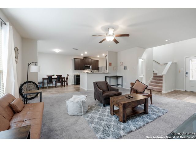 Welcome to this inviting 5-bedroom, 2.5-bathroom two-story home, featuring a convenient spare bedroom on the main level while the primary suite and three additional bedrooms are located upstairs. The home is filled with an abundance of natural light and boasts an open floor plan that enhances the spacious feel. The kitchen is a chef's delight, equipped with granite countertops, stainless steel appliances, and plenty of cabinet and countertop space for all your culinary needs. Each bedroom offers generous space, ensuring comfort for everyone. Step outside to the backyard, which features a covered patio and ample yard space, perfect for entertaining family and friends. Come check it out!