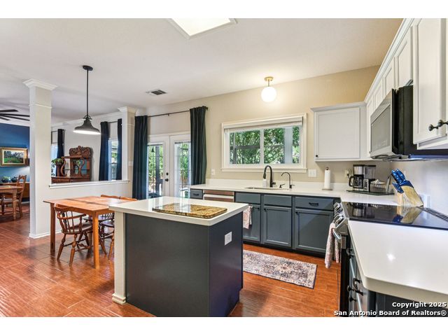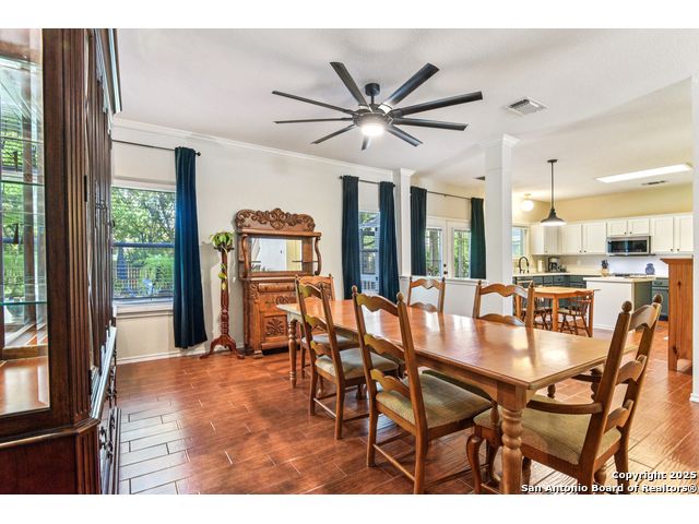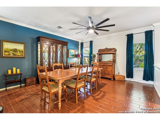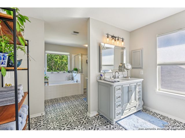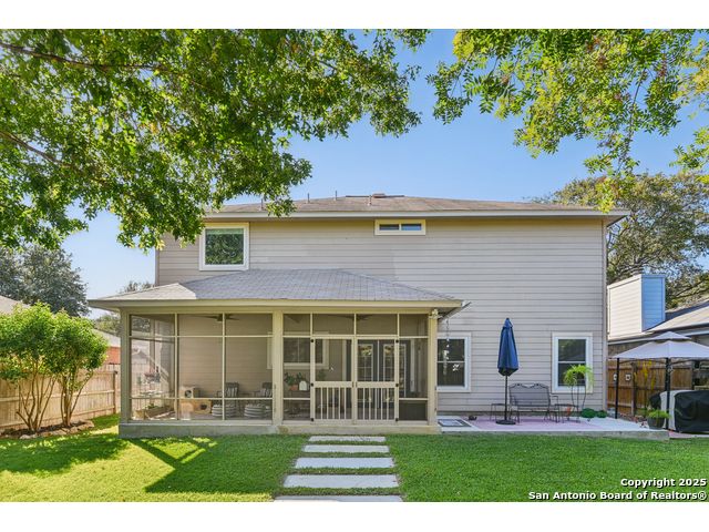 **OPEN HOUSE - Saturday Nov. 11 from 2 - 5pm** Move-in ready and full of recent upgrades, this beautifully maintained 3-bedroom, 2.5-bath home is located in the desirable Preston Hollow community on San Antonio's north side. Just minutes from Loop 1604 and US-281, this home offers quick access to shopping, restaurants, and major employers across the North Central corridor. Inside, you'll find stunning wood-look tile throughout the first floor and a spacious open layout designed for both everyday living and entertaining. The island kitchen features granite countertops, recently purchased stainless steel appliances, and plenty of cabinet space that flows seamlessly into the dining and living areas. Upstairs offers a flexible game room or media space along with a generous primary suite featuring an updated bathroom with decorative tile, a separate soaking tub and shower, and dual vanities. Two secondary bedrooms share a full bath with a double vanity and stylish updated finishes. Step outside to enjoy an oversized screened-in covered patio and extended slab, ideal for relaxing or hosting friends. The backyard is private and serene with mature trees, no rear neighbors, and a full privacy fence. Notable updates include a new HVAC system installed in 2021, epoxy flooring in the garage, and several replaced windows in 2022 in the kitchen, living room, bathroom, and utility area. Residents of Preston Hollow enjoy being walking distance to McAllister Park-one of San Antonio's largest parks-offering over five miles of paved trails, ten miles of nature paths, and sports fields for soccer and baseball. With quick access to the San Antonio Greenway Trail System and top-rated NEISD schools nearby, this home blends convenience, comfort, and location perfectly.
