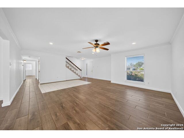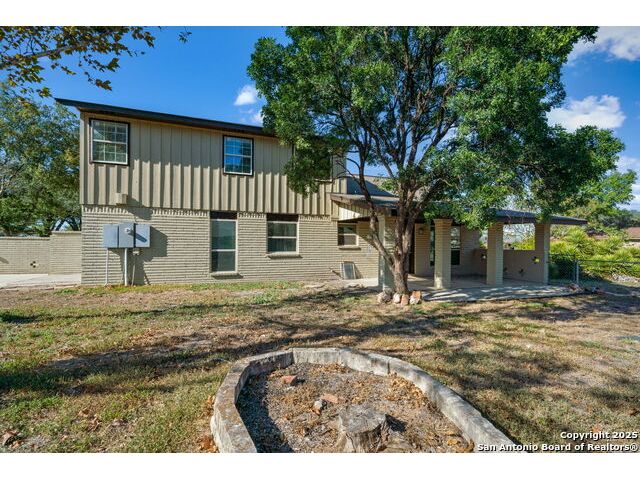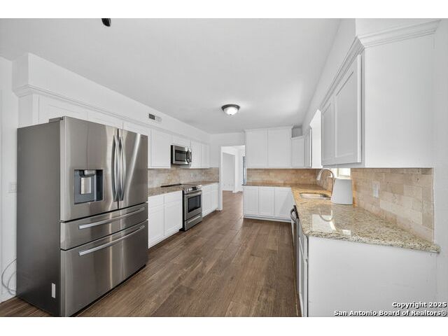 This beautiful 4-bedroom home on the Hill sits on a spacious 1/3-acre corner lot surrounded by mature trees and fresh landscaping. Inside, you'll find modern tile floors, stunning granite countertops, a stylish tile backsplash, and quality cabinetry with stainless steel appliances. The living area offers an inviting layout perfect for relaxing or entertaining. The primary suite is conveniently located downstairs with a private outdoor sitting area, while the additional bedrooms and a large office are upstairs, providing plenty of space for family or work-from-home needs. Enjoy the oversized garage with epoxy flooring, a sink, washer and dryer, and an insulated door. Located within walking distance to the Comal River, Panther Canyon Nature Trail, and Landa Park, this home offers the best of New Braunfels living - outdoor adventure, natural beauty, and convenience all at your doorstep!