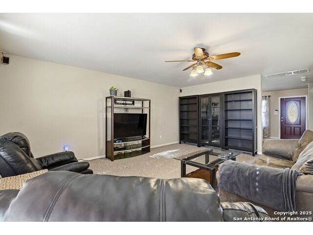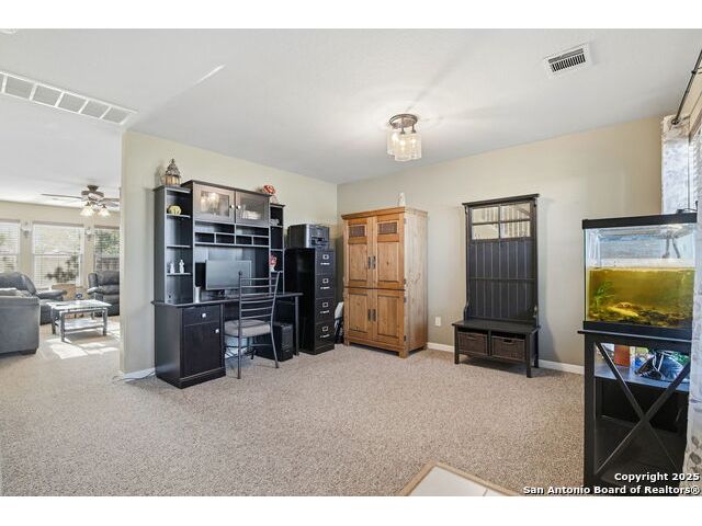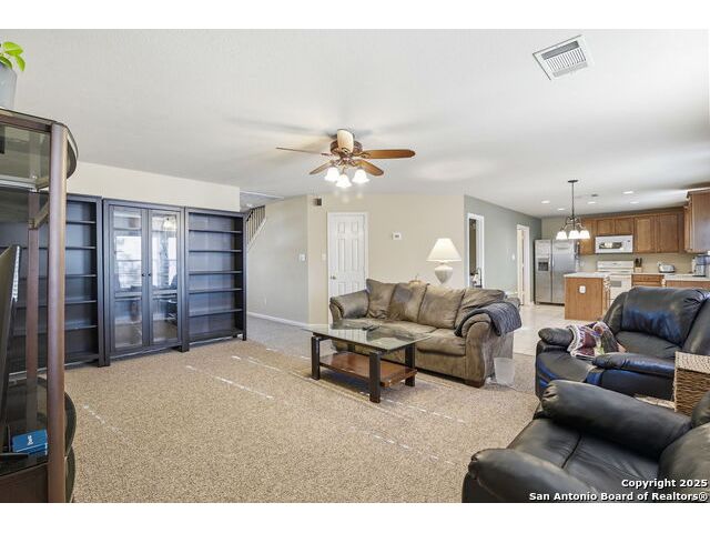 This immaculate and move-in ready Cibolo home offers a a bright, comfortable layout. Immaculate and move-in ready, this Cibolo home offers a bright, comfortable layout from the moment you walk in. The living room features surround sound for movie nights or game day and flows into a kitchen with abundant cabinet and counter space. You have got to experience the oversized primary suite, approximately 20 ft by 17 ft, with plenty of room for a sitting area, its own surround sound for an amazing escape, a spacious walk-in closet, and a well-appointed bathroom with a separate tub and shower that creates a true private retreat. Secondary bedrooms provide plenty of space for guests, hobbies, or a home office. Outside, a neat yard and patio offer a comfortable space to relax or entertain. Located in SCUC ISD and convenient to shopping, dining, gyms, coffee, and major commuter routes, this home keeps everyday errands simple. Come experience the comfort and convenience for yourself and schedule your private tour of 133 Falling Sun today.