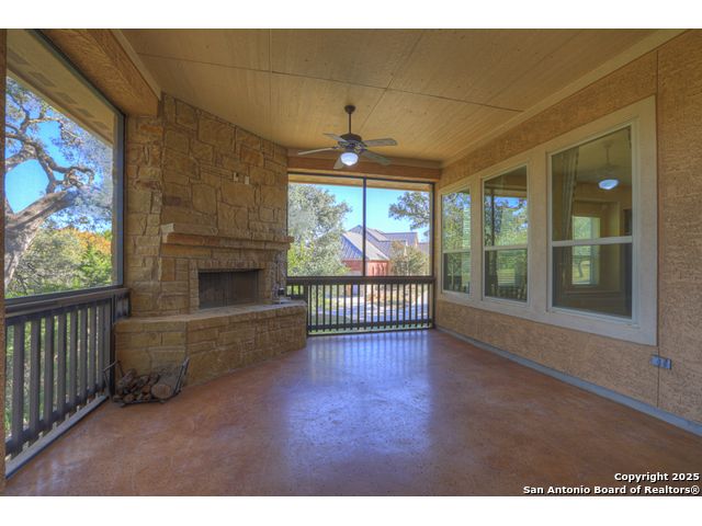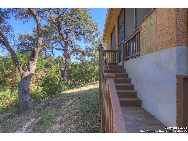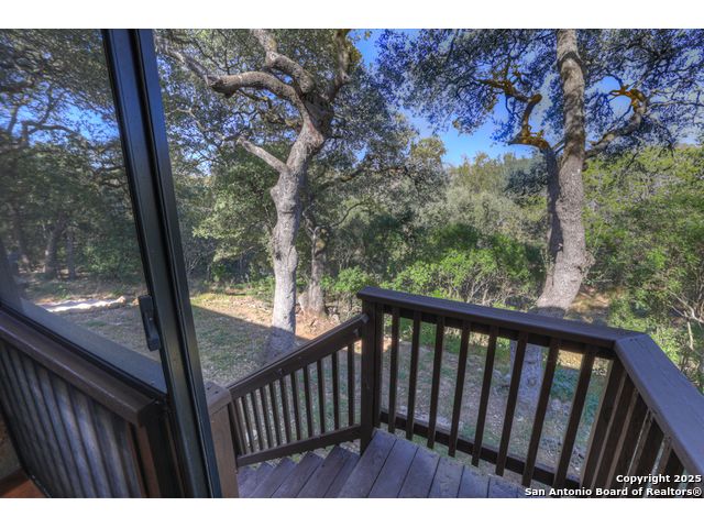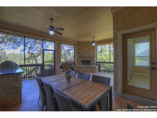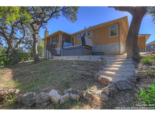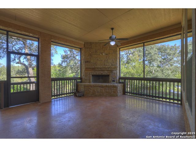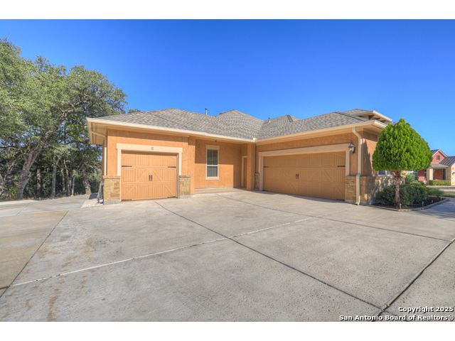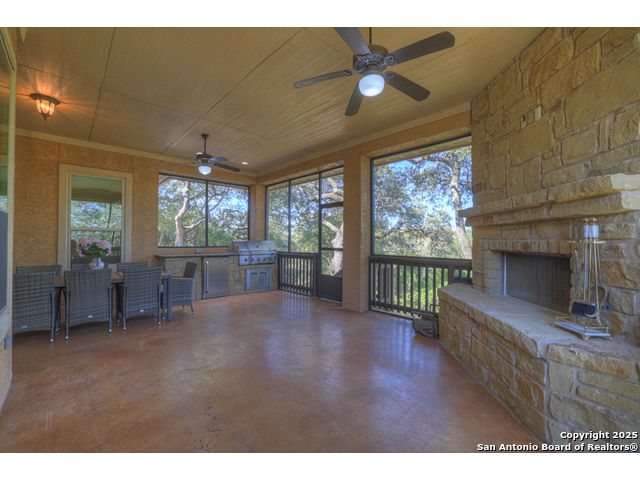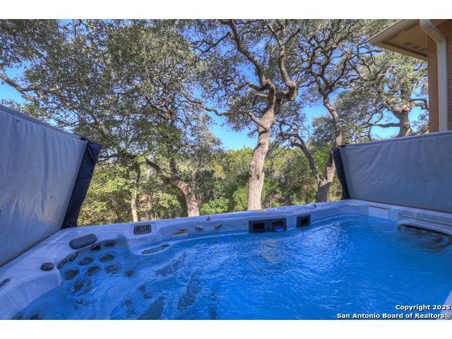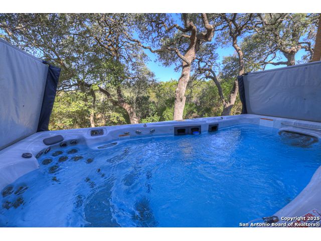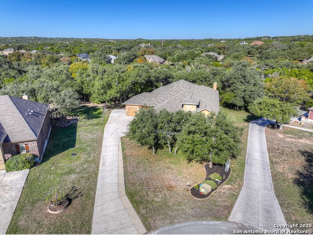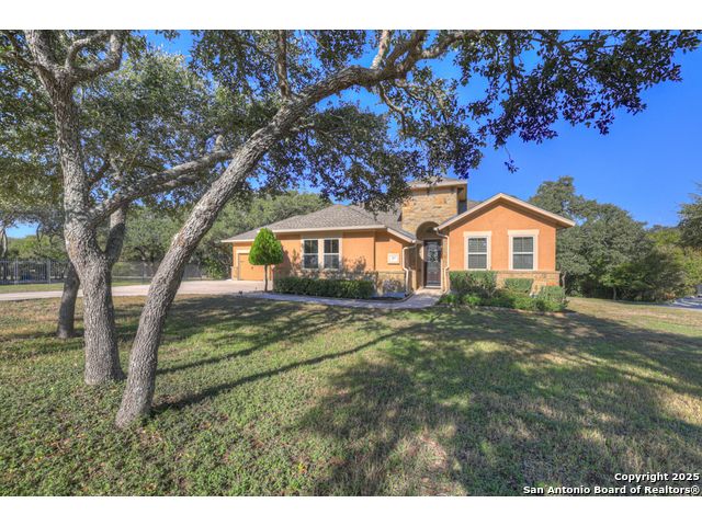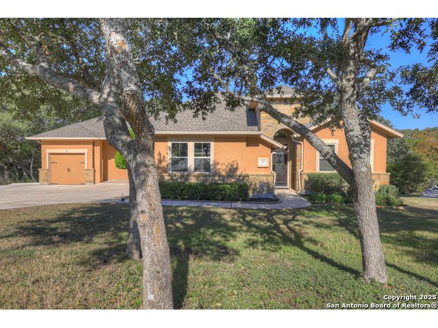 HILL COUNTRY CHARM IN GATED COMMUNITY: Nestled on a quiet cul-de-sac within the exclusive gated community of Texas Country Estates, this beautiful one-story home offers the perfect blend of Hill Country charm and modern comfort. Situated on a 1.17-acre wooded lot with majestic old-growth oaks, the property backs to a serene greenbelt for added privacy and natural beauty. The home features a timeless full-masonry exterior and a recently replaced roof (2022). Inside, you'll find an open, inviting layout with 3 spacious bedrooms plus a study, flex room, 2.5 bathrooms, and an oversized 2-car garage complemented by an additional 1-car garage which provides ample space for a vehicle, hobbies, or storage. The kitchen is designed for both style and functionality, showcasing granite countertops, a gas cooktop, and abundant cabinetry. The great room centers around a stunning stone fireplace and flows seamlessly to the screened-in patio-complete with its own fireplace and outdoor kitchen-perfect for entertaining year-round. A luxurious swim spa adds to the resort-style living experience, offering the option to enjoy invigorating swims all year long or relaxing soaks beneath the stars. This exceptional property captures the essence of New Braunfels living-quiet, private, and surrounded by nature-while still being just minutes from shopping, dining, and recreation.