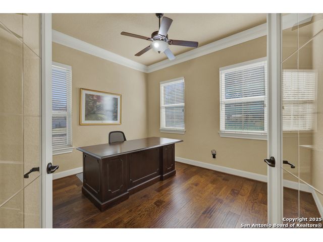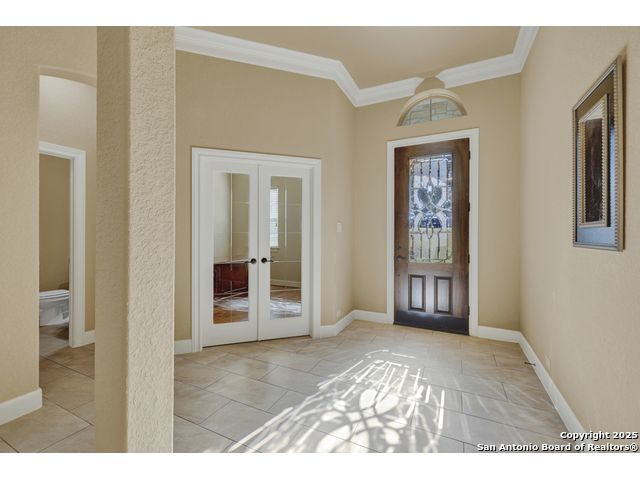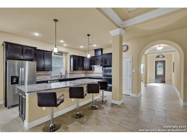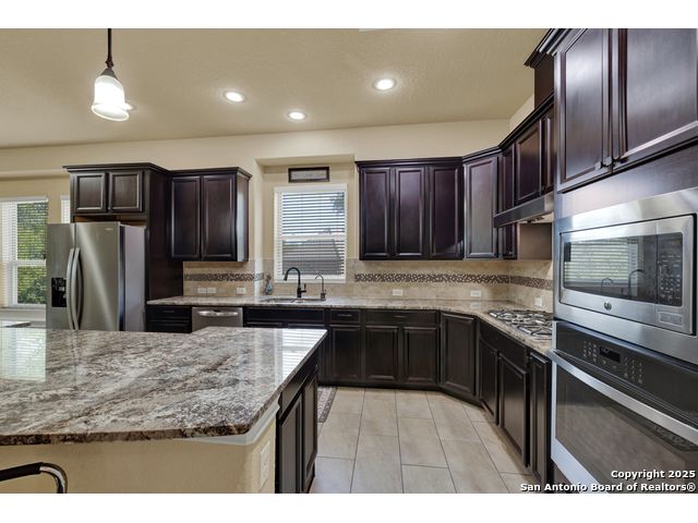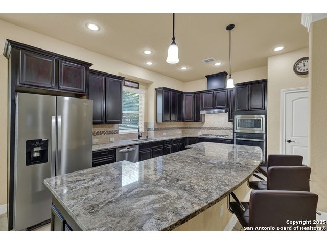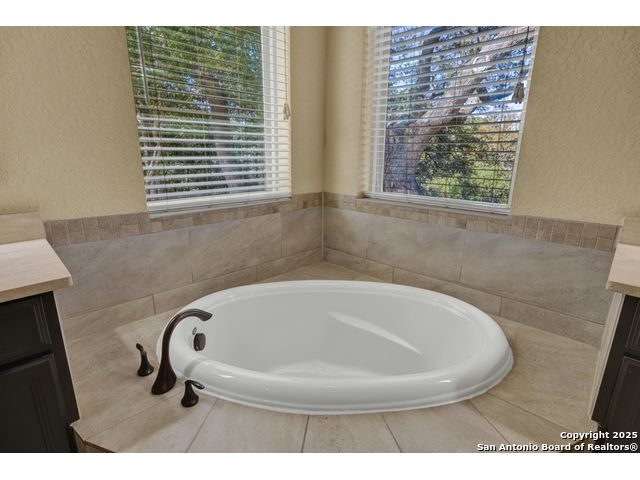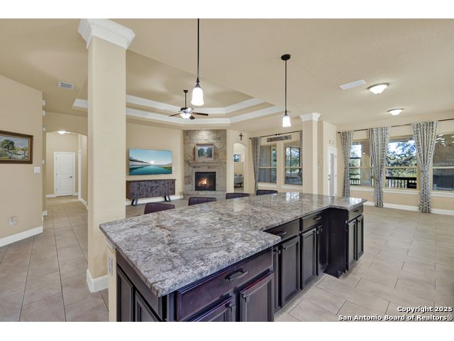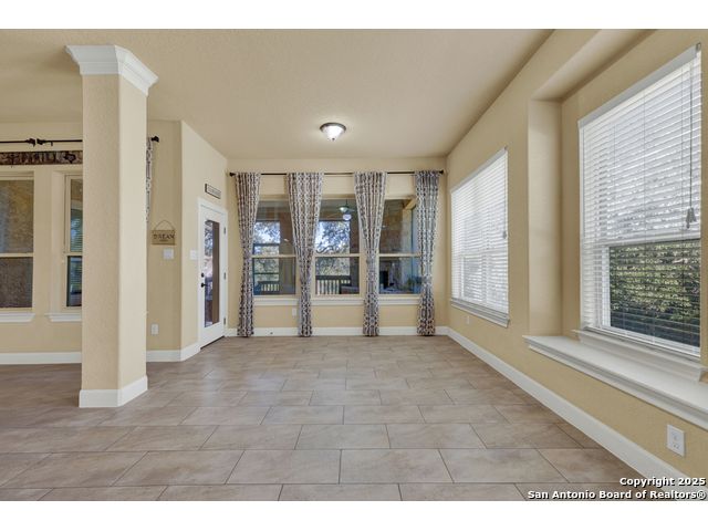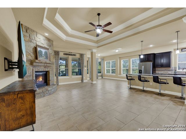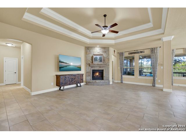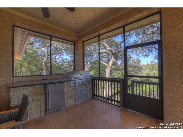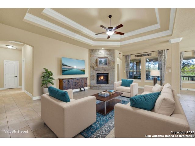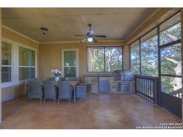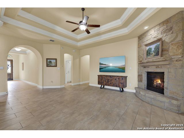 HILL COUNTRY CHARM IN GATED COMMUNITY: Nestled on a quiet cul-de-sac within the exclusive gated community of Texas Country Estates, this beautiful one-story home offers the perfect blend of Hill Country charm and modern comfort. Situated on a 1.17-acre wooded lot with majestic old-growth oaks, the property backs to a serene greenbelt for added privacy and natural beauty. The home features a timeless full-masonry exterior and a recently replaced roof (2022). Inside, you'll find an open, inviting layout with 3 spacious bedrooms plus a study, flex room, 2.5 bathrooms, and an oversized 2-car garage complemented by an additional 1-car garage which provides ample space for a vehicle, hobbies, or storage. The kitchen is designed for both style and functionality, showcasing granite countertops, a gas cooktop, and abundant cabinetry. The great room centers around a stunning stone fireplace and flows seamlessly to the screened-in patio-complete with its own fireplace and outdoor kitchen-perfect for entertaining year-round. A luxurious swim spa adds to the resort-style living experience, offering the option to enjoy invigorating swims all year long or relaxing soaks beneath the stars. This exceptional property captures the essence of New Braunfels living-quiet, private, and surrounded by nature-while still being just minutes from shopping, dining, and recreation.