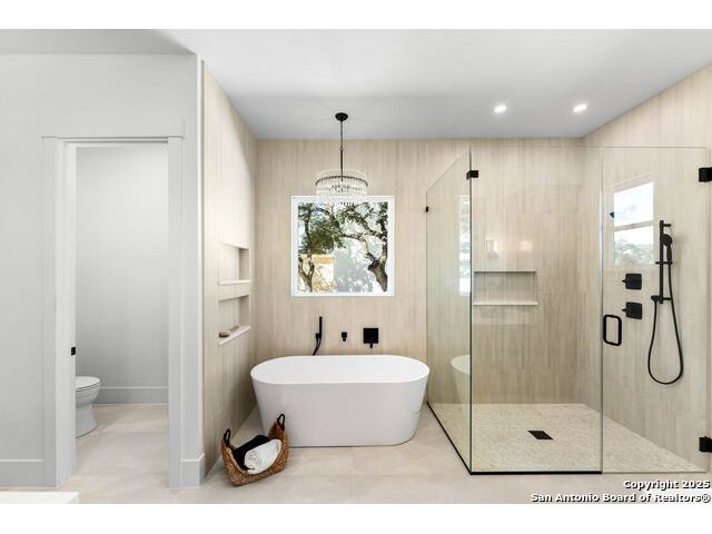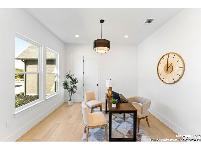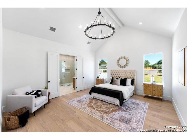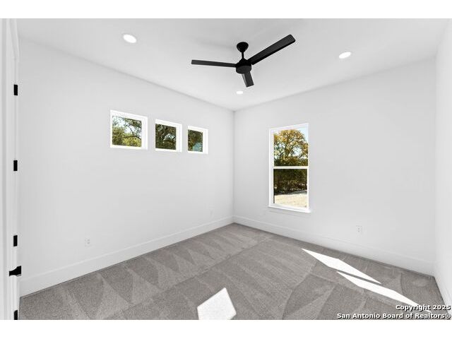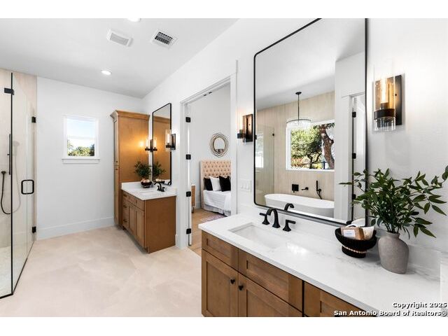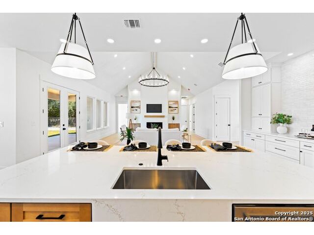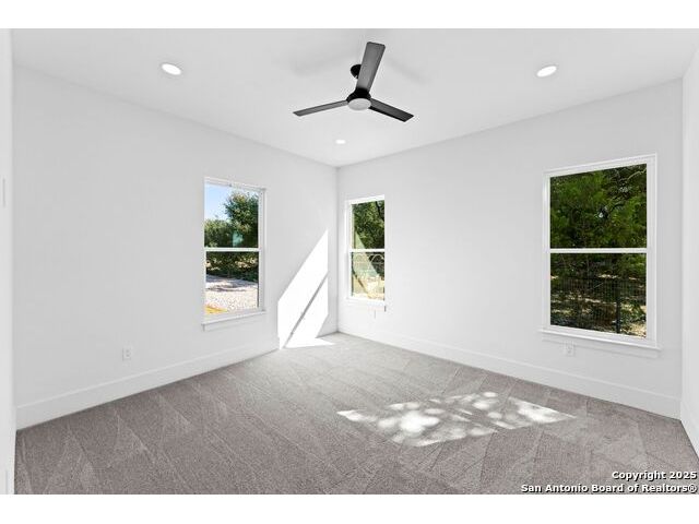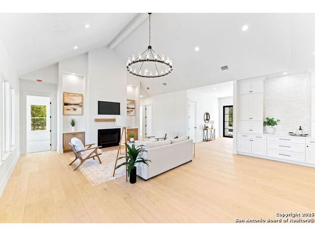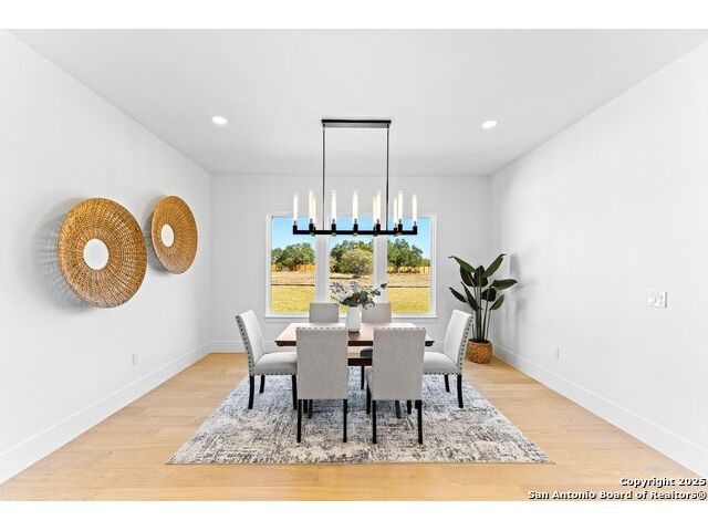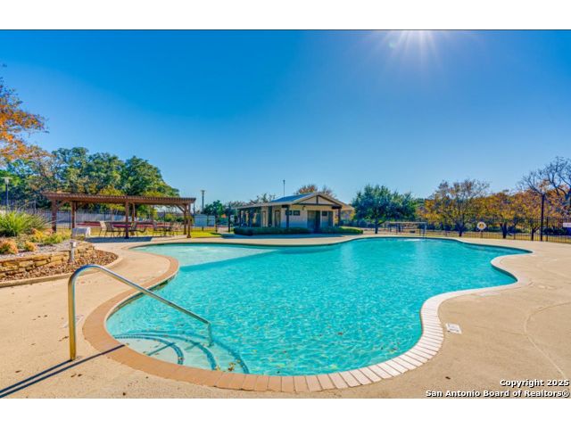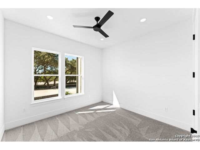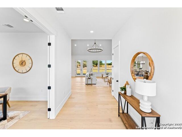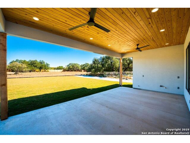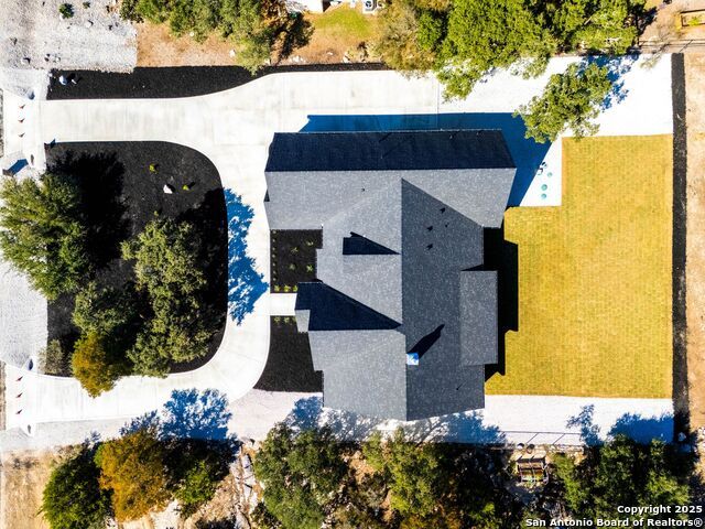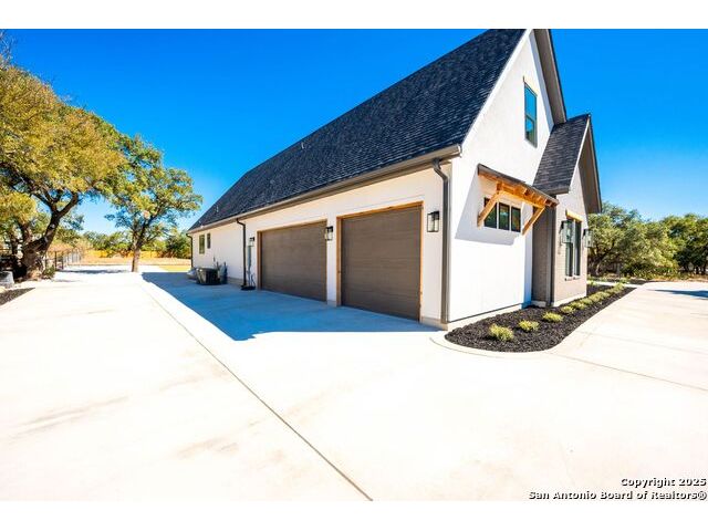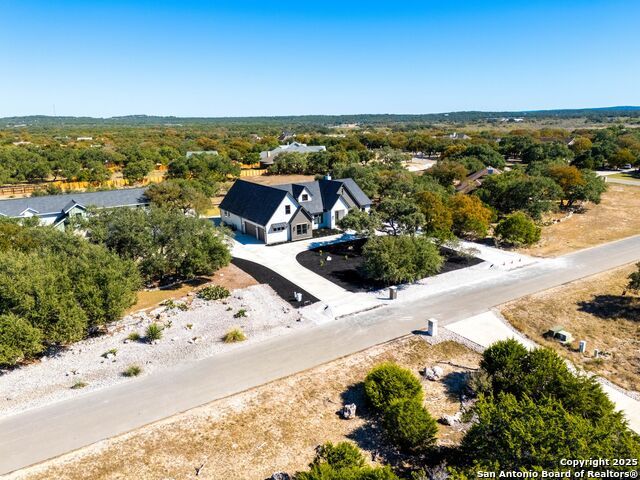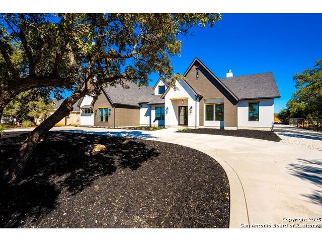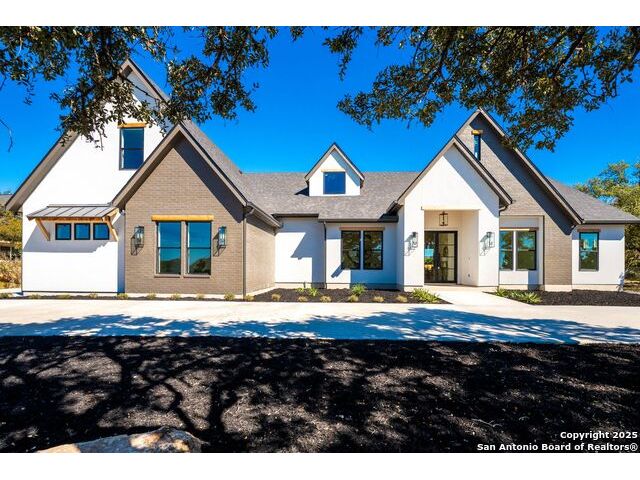 Featuring an exceptional new custom built home where timeless elegance meets modern convenience. Nestled on a beautifully landscaped 1 acre lot, this home boasts a striking stucco and brick exterior paired with an impressive 3-car garage. The open floor plan features 5 bedrooms including the flex room, 3 full baths, 2 half baths, and an upstairs loft/ media room. Step inside the grand iron double doors, and be greeted by soaring high vaulted ceilings, 8-foot doors, and an abundance of natural light streaming through a wall of windows. The floor plan features spacious living areas around a wood burning fireplace, perfect for both relaxed living and elegant entertaining. The chef's dream kitchen offers an oversized 10 ft island, sleek quartz waterfall countertops, two-tone cabinetry providing exceptional storage, and a full Z-Line appliances package that features a 48-inch 8 burner propane range with a custom built-in vent hood. A large pantry adds even more function and style. Retreat to spa-like comfort with the primary suite featuring vaulted ceilings, a large custom walk-in closet with an additional hidden closet behind a murphy mirror door, that seemlessly connects to the laundry room with a pet washing station for ultimate convenience. Upstairs in the loft/ media room includes a wet bar and ceiling outlet for an in-house movie projector/theater room. Outside, enjoy an entertainer's paradise with a large covered patio, plumbed for a future outdoor kitchen, and lush landscaping supported by the outdoor sprinkler system. Practical luxury is at the heart of this home with energy-efficient foam insulation in all the exterior walls and ceilings including the garage with a 240-vault EV charger outlet, two AC units, and a grand circular driveway- all working together to maximize comfort and efficiency. This property is located within The Crossing at Spring Creek subdivision, where you'll enjoy a community pool, volleyball court, and a pavilion/ built-in bbq area. 1-2-10 Builder warranty included. Situated within highly rated schools in Comal ISD, this home is a must-see in person-