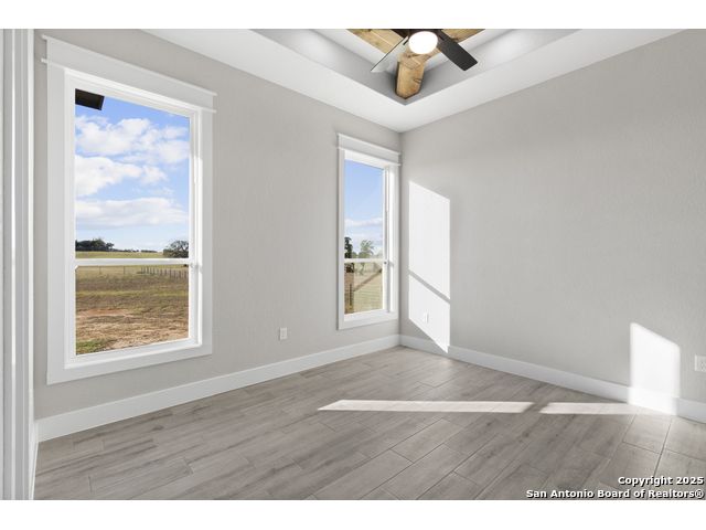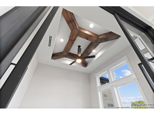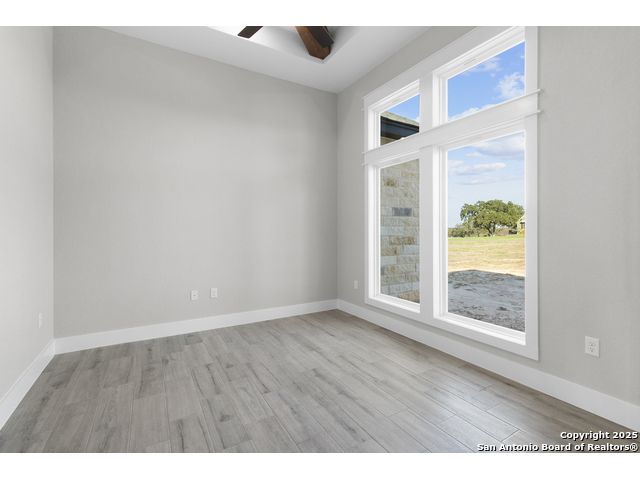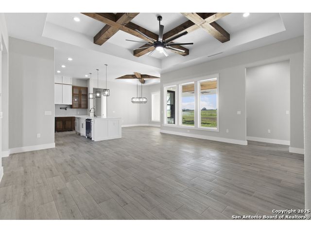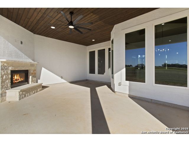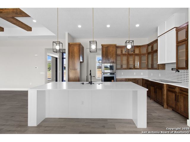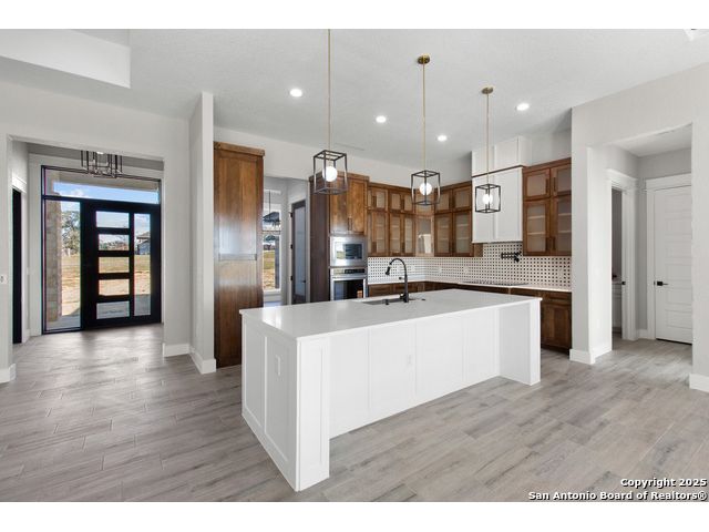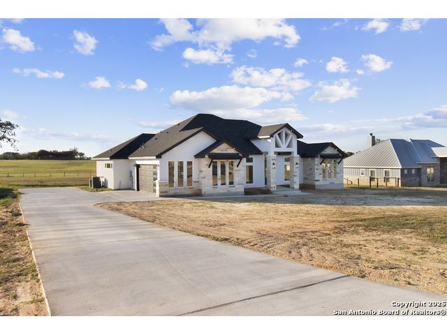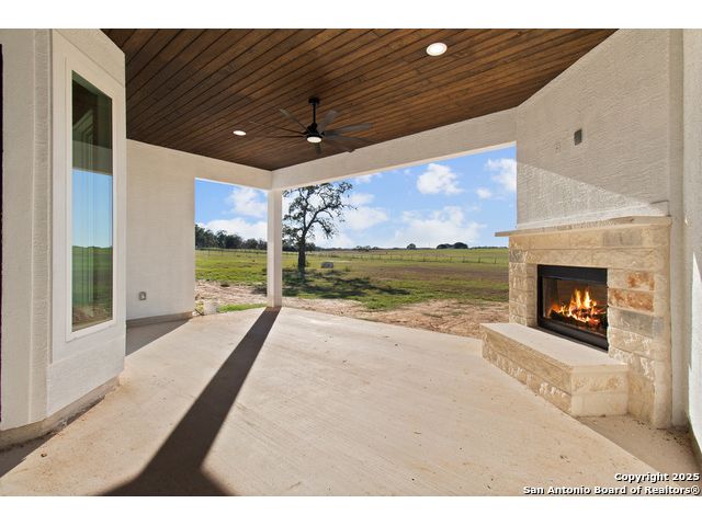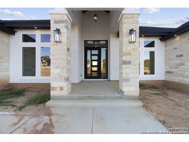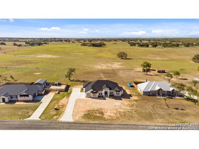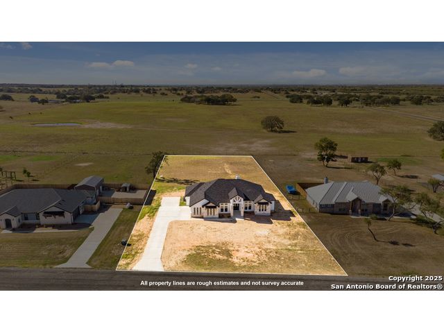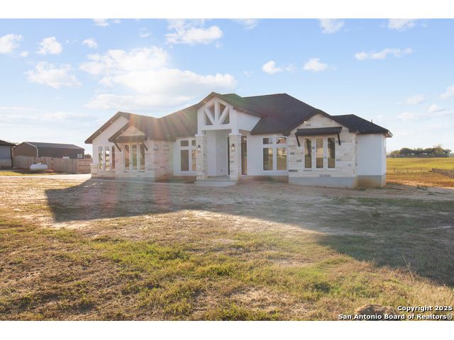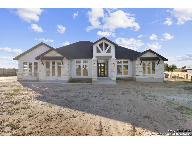 Built by Plata Custom Homes,LLC. This Elegant Hill Country-style custom home featuring exceptional craftsmanship and stunning sunset views from the backyard. Located in a charming small-community neighborhood with quick access to Loop 1604, this home offers the perfect blend of peaceful living and everyday convenience. With nearly 2,900 sq ft, 4 bedrooms, 3.5 bathrooms, and a dedicated study, this thoughtfully designed layout places the private primary suite on one side of the home and the secondary bedrooms on the other, providing comfort and privacy for everyone. As you enter, you're welcomed by soaring ceilings and a spacious entryway. The home includes a beautiful study accented with glass statement doors and a private dining room-ideal for hosting holidays and gatherings. The kitchen showcases a large quartz island, clean white finishes, and a clear view of the breathtaking sunsets through the back windows. The living room features a cozy fireplace with custom built-ins for added charm. The primary suite offers a tray-ceiling detail, an oversized walk-in shower, and a spacious closet with custom shelving.Ready for move-in. The laundry room includes a sink, custom wood cabinetry, and quartz countertops that continue throughout the home. Additional features include a fully insulated garage and a pre-wired security system. The covered back patio-with a ceiling fan and fireplace-creates the perfect setting for enjoying Texas BBQ and Hill Country views. The spacious backyard offers ample room to design your dream outdoor oasis. Builder warranty from 2-10 Home Warranty provided.