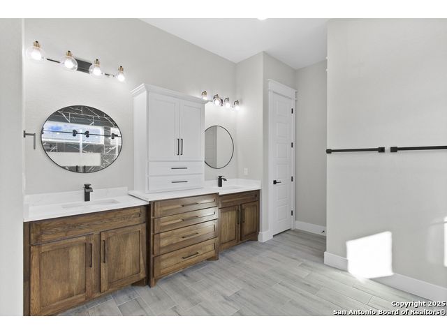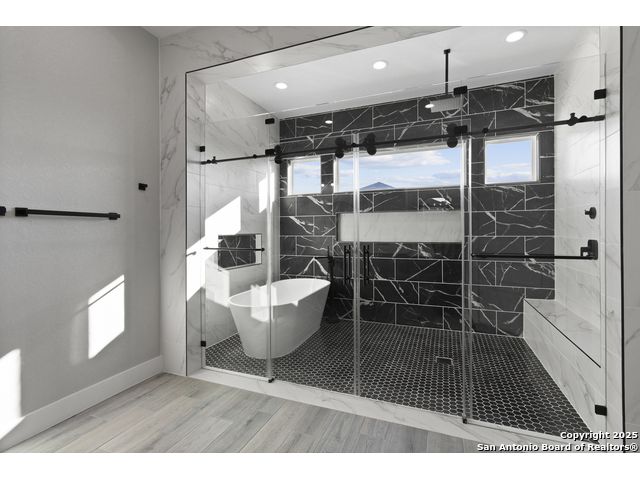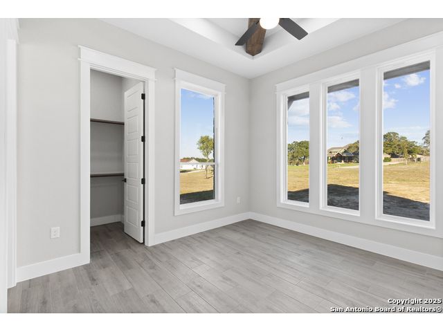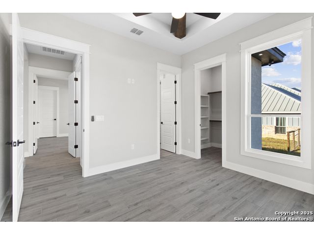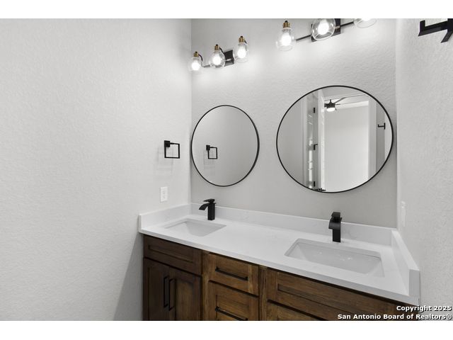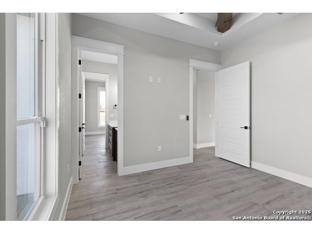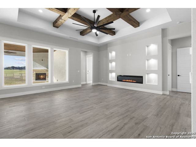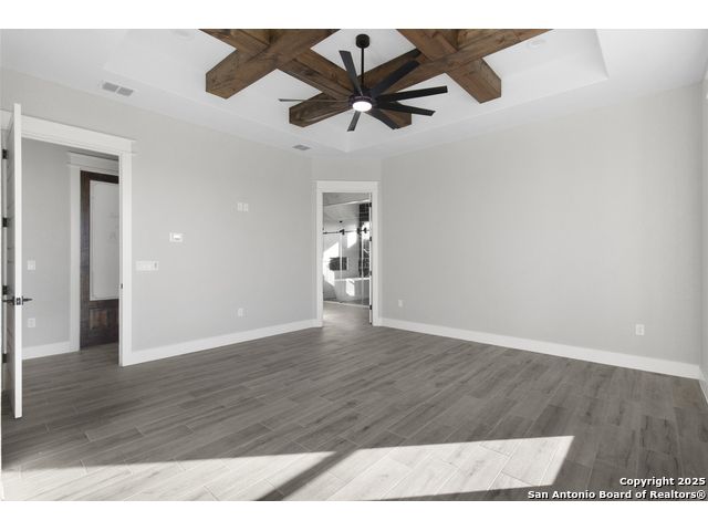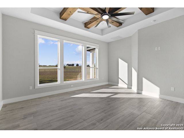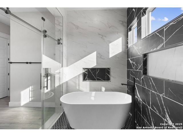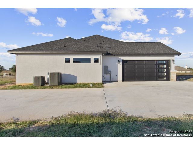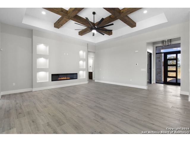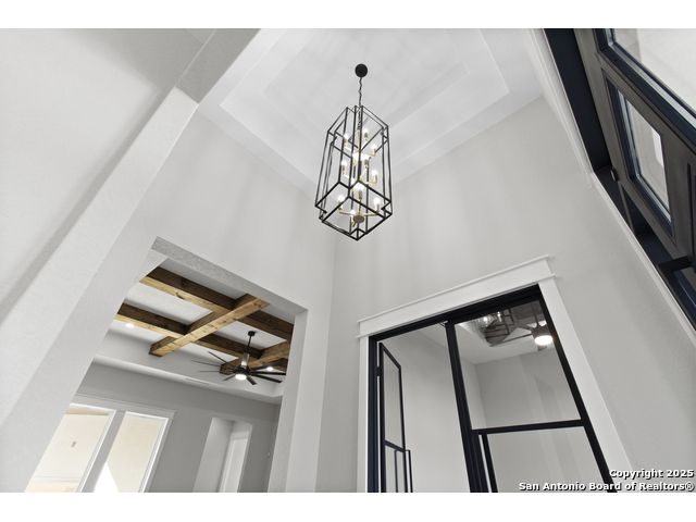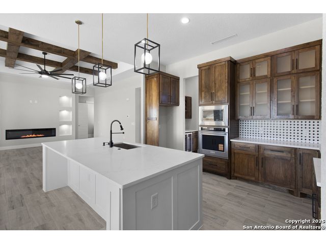 Built by Plata Custom Homes,LLC. This Elegant Hill Country-style custom home featuring exceptional craftsmanship and stunning sunset views from the backyard. Located in a charming small-community neighborhood with quick access to Loop 1604, this home offers the perfect blend of peaceful living and everyday convenience. With nearly 2,900 sq ft, 4 bedrooms, 3.5 bathrooms, and a dedicated study, this thoughtfully designed layout places the private primary suite on one side of the home and the secondary bedrooms on the other, providing comfort and privacy for everyone. As you enter, you're welcomed by soaring ceilings and a spacious entryway. The home includes a beautiful study accented with glass statement doors and a private dining room-ideal for hosting holidays and gatherings. The kitchen showcases a large quartz island, clean white finishes, and a clear view of the breathtaking sunsets through the back windows. The living room features a cozy fireplace with custom built-ins for added charm. The primary suite offers a tray-ceiling detail, an oversized walk-in shower, and a spacious closet with custom shelving.Ready for move-in. The laundry room includes a sink, custom wood cabinetry, and quartz countertops that continue throughout the home. Additional features include a fully insulated garage and a pre-wired security system. The covered back patio-with a ceiling fan and fireplace-creates the perfect setting for enjoying Texas BBQ and Hill Country views. The spacious backyard offers ample room to design your dream outdoor oasis. Builder warranty from 2-10 Home Warranty provided.