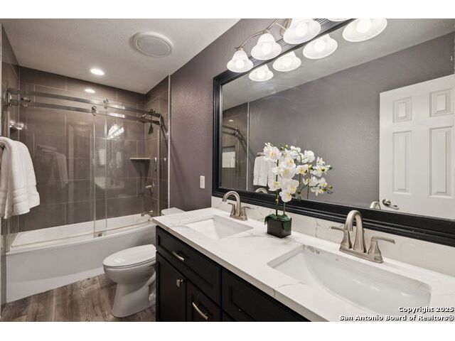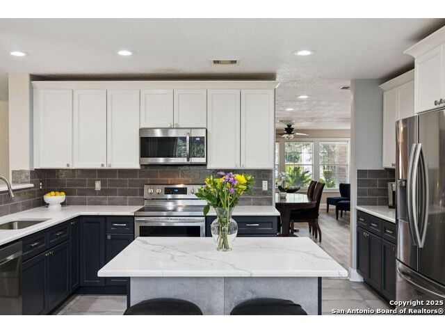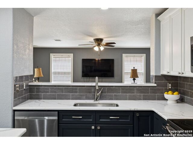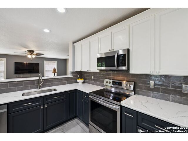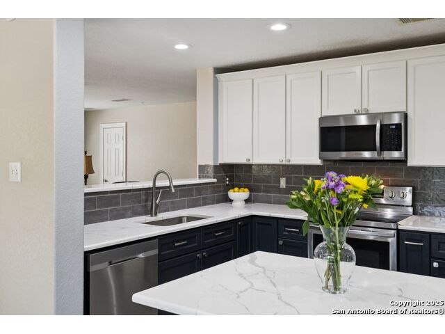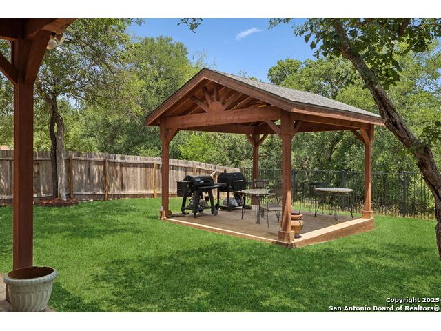This Beautiful 4 Bedroom 2.5 Baths is located in Stage Run and it's Move-In Ready. Plenty of room from top to bottom to entertain Family and Friends. Enjoy the Amazing Greenbelt & come take a look and fall in Love with this updated Home. Gorgeous Updates and 2020 roof! Study could be used as a 5th bedroom. Positioned on a quiet cul-de-sac street in the sought-after I-10 corridor, this beautifully maintained two-story home backs to a scenic greenbelt and offers both privacy and charm. The open-concept layout is ideal for everyday living and entertaining, featuring a fully updated gourmet kitchen with QUARTZ countertops, a spacious island, farm sink, stainless steel appliances, an oversized pantry, and a sunlit breakfast area with views of the lush backyard. Step outside to your private oasis with a covered patio, gazebo, mature trees, and no rear neighbors-perfect for relaxing or hosting guests. Enjoy stylish, low-maintenance laminate, wood, and ceramic tile flooring throughout. Major updates include renovations to the kitchen, primary suite, all of the bathrooms. Location, Location and Location...Home is close to The Rim, La Cantera, Fiesta Texas and a Golf Driving Range. You will Love this Location and the amenities that this subdivision provides: Pool, Club House, Basketball court, dog park, sports court, and play area for the whole Family. A Must See...