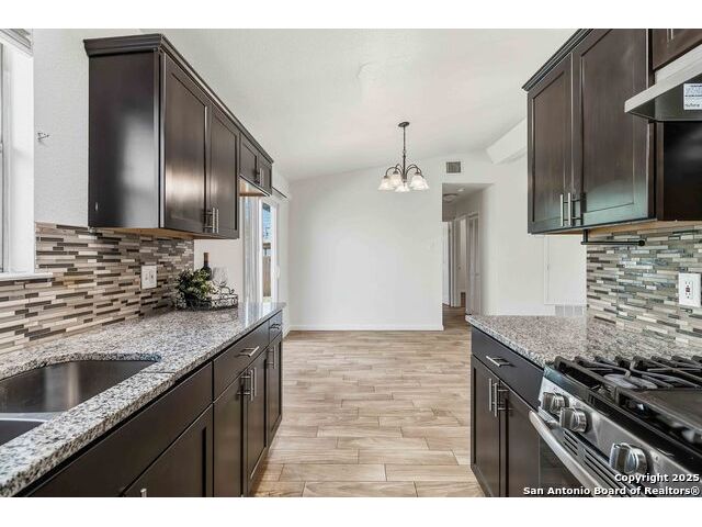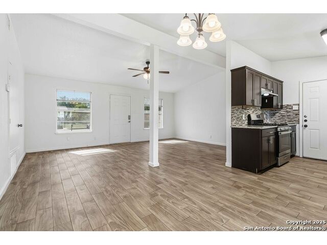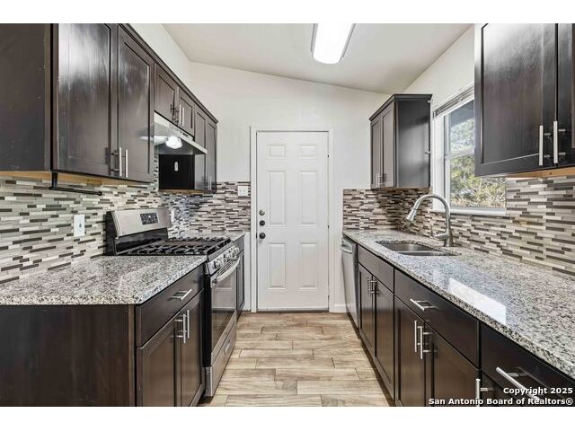 This beautifully updated single-story home offers modern comfort and low-maintenance living near Lackland Air Force Base. Fully remodeled in 2018 and freshly updated with all-new interior paint and some new siding, this home is move-in ready and full of charm. Inside, you'll find an open and efficient layout featuring 2 bedrooms and 1 full bath. The bright living area flows into a modern kitchen with updated finishes, creating a comfortable space for everyday living or entertaining. Outside, enjoy a covered carport, fenced backyard with plenty of room to make it your oasis, and a quiet street in an established neighborhood. Conveniently located near shopping, dining, and just 15 minutes from downtown San Antonio. Perfect for single military members, couples, or investors looking for a turnkey property close to base and city amenities. Recent replacements include: A/C, Furnace, Water Heater & Roof.