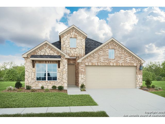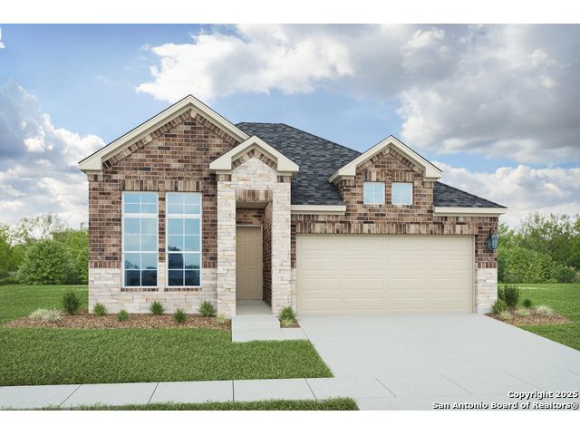 Welcome to the Aruba plan in the Clear Creek community of New Braunfels. This inviting home offers a brick exterior, three bedrooms, two bathrooms, an extended covered patio, and a dedicated study that provides flexibility for work or relaxation. The kitchen is designed for both style and function with a center island and sink, engineered marble countertops, forty two inch wood cabinetry, a spacious corner pantry, and a ceramic tile backsplash. The owners suite is a comfortable retreat featuring a ceramic tile shower, dual sink vanity, a private water closet, a linen closet, and a generously sized closet. The laundry room includes built in shelving for added convenience Clear Creek residents enjoy direct access to the access road near Interstate thirty five, making daily commutes easy. The community is also close to many local attractions. Downtown New Braunfels offers boutique shopping, local dining, entertainment, and year round events. Lake Dunlap provides a peaceful place for fishing and water activities, while Canyon Lake is ideal for enjoying scenic views and outdoor adventures. The nearby Gruene Historic District is a lively destination known for live music, special events, and the iconic Gruene Hall.