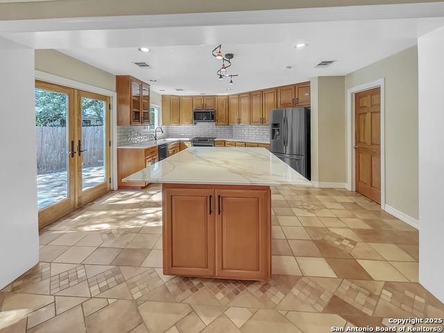 This beautifully updated single-story home is nestled in a gated community and is guaranteed to impress. The thoughtfully designed layout features 3 bedrooms, 2 bathrooms, and an open-concept living area that seamlessly connects to a sun-drenched dining space. The stunning kitchen boasts an expansive island with quartz/granite countertops, glass-front cabinets, and stainless steel appliances, including a refrigerator. The spacious primary bedroom offers his-and-hers walk-in closets and a private ensuite. Both bathrooms feature granite countertops. Plenty of additional storage throughout the home. The backyard is perfect for entertaining, with an extended flagstone patio ideal for hosting large gatherings. Additional highlights include a 2-car garage and a convenient location near major routes, shopping, and dining options. Schedule a showing and experience it today!