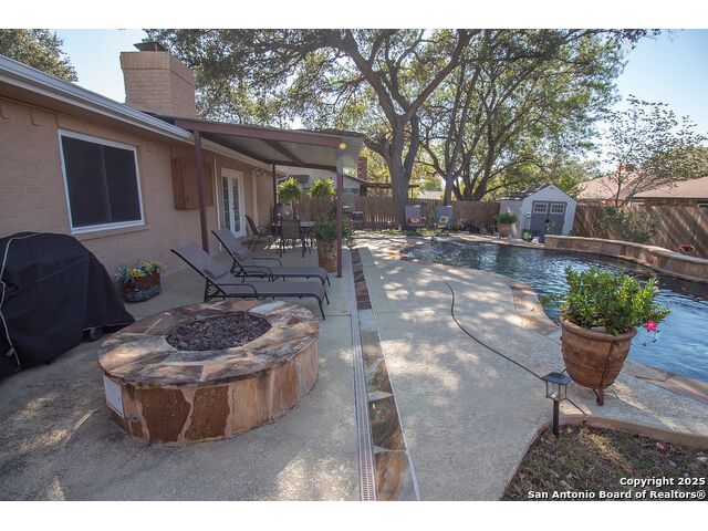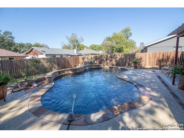 This home has been excellently enhanced. Beautiful wood flooring added to this home. New stove/oven for perfect cooking. Sconces and lighting added for that perfect ambiance. Enjoy a spa like shower in your primary bedroom as you have waterfall shower with large walk-in flooring to unwind. New lighting added throughout the home. Enjoy cool evenings under the new covered patio as you watch kids play in the gorgeous in ground pool. Pool has waterfall feature and does have different ambient lighitng with remote control for those cozy night swims. Light up the outside firepit for roasting marshmallows. This home has all the outdoor entertainment needed while living within the city limits.