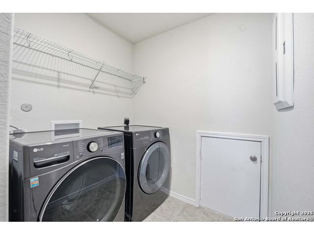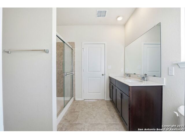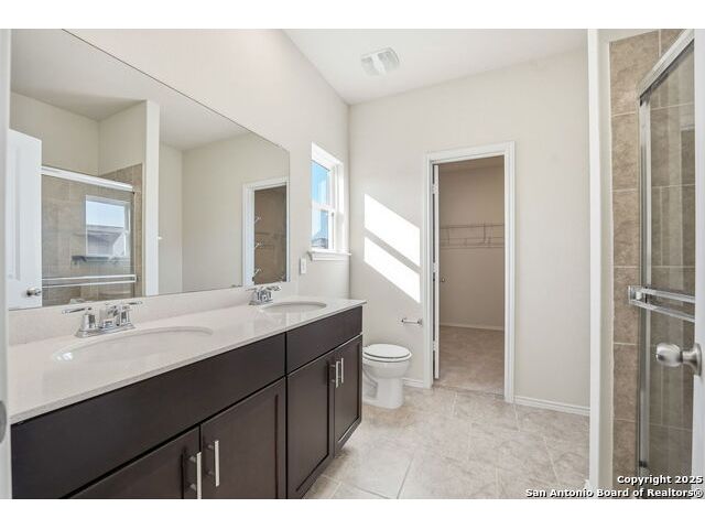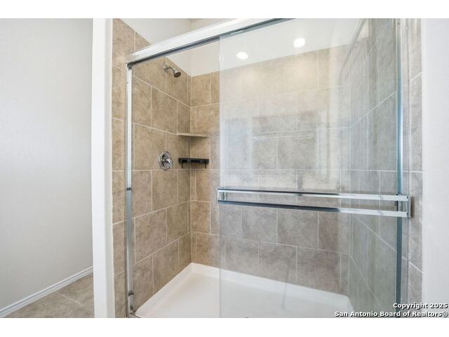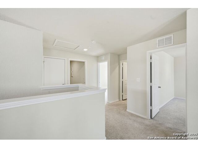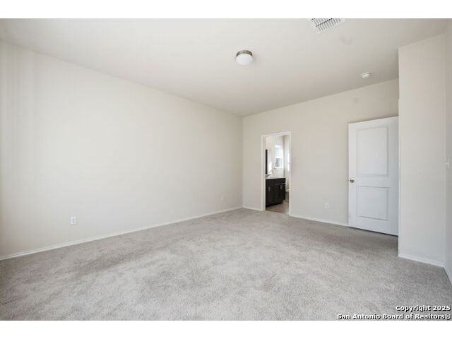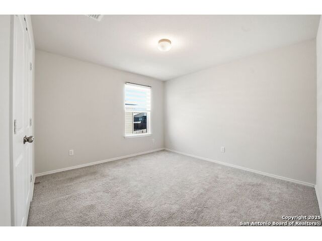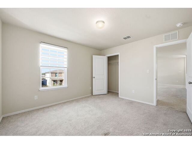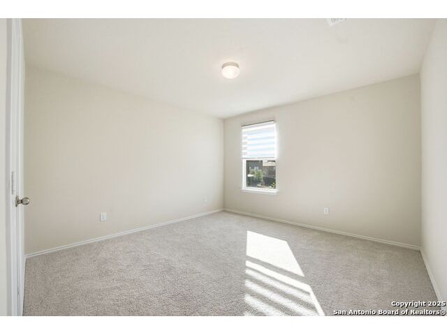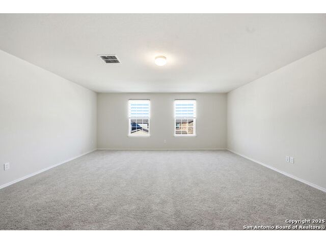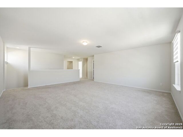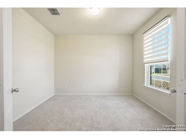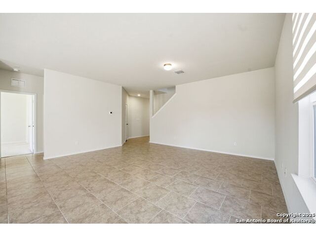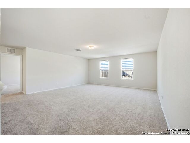 Newer build in the Cinco Lake community, this thoughtfully designed home blends modern style with everyday functionality. The open floor plan highlights recessed lighting, elegant custom blinds in the living area, and rich dark cabinetry paired with granite countertops and stainless steel appliances. A spacious kitchen island adds extra seating and prep space, creating a seamless setting for both cooking and entertaining. A flexible room on the first floor is ideal for a home office or creative studio, while the primary suite on the main level includes a full bath and walk-in closet. Upstairs, a comfortable loft provides additional living space, complemented by a conveniently located laundry room. Additional enhancements include a water softener, gutters, and a fully fenced backyard designed for privacy and easy upkeep. Residents can enjoy community amenities such as a pool and neighborhood park. Located just minutes from Lackland Air Force Base, SeaWorld, and major destinations across San Antonio, with quick access to Loop 1604, shopping, dining, and entertainment.