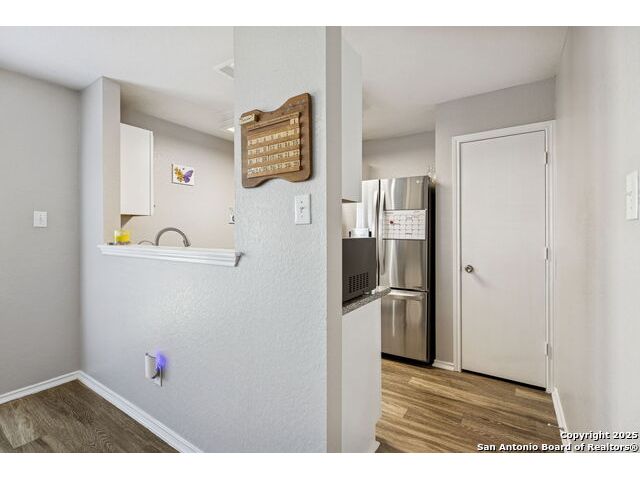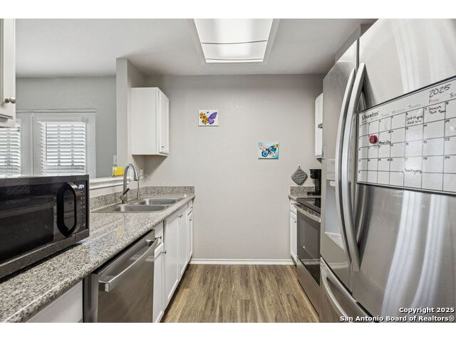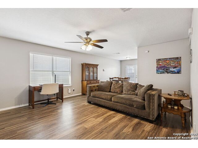 Move-in ready and minutes from Randolph AFB, Fort Sam Houston, The Forum, Loop 1604, and I-35, this updated 3 bedroom, 2 bath home offers low-maintenance living and a super convenient location. Inside, you'll find wood-look vinyl flooring throughout (no carpet), a refreshed kitchen with new cabinetry, granite countertops, and stainless steel appliances, plus freshly painted interior and exterior. Both bathrooms feature updated vanities, and a recently installed A/C unit helps keep energy costs in check. The living room provides comfortable space for relaxing or hosting, while the backyard is ready for grilling, pets, or play. Nearby walking trails and playgrounds add to the appeal. Come see all 8919 Kestrel Oak has to offer!