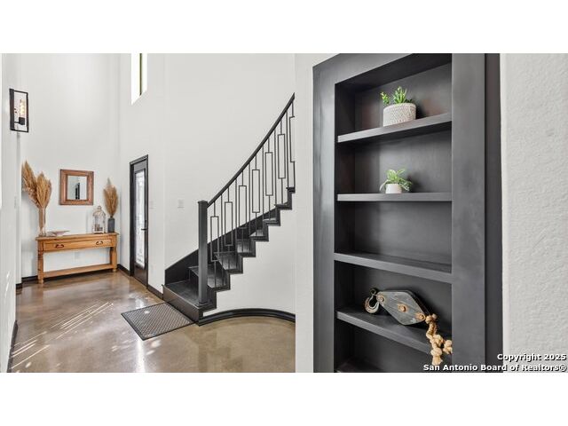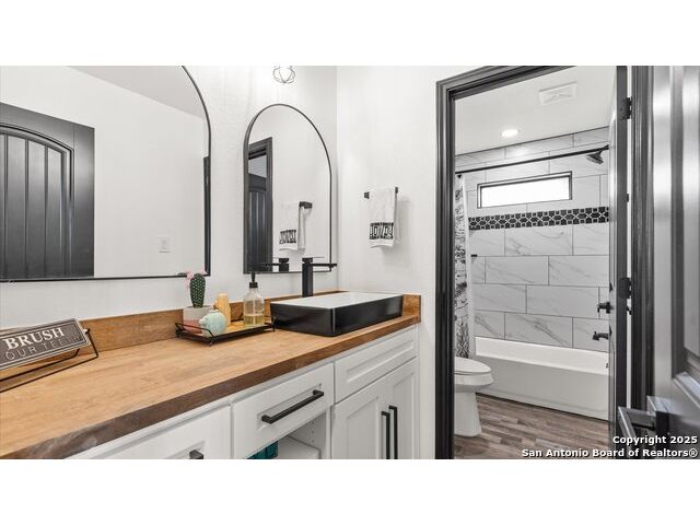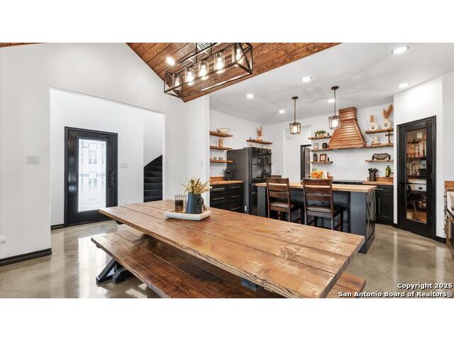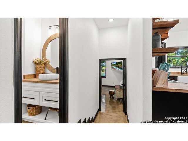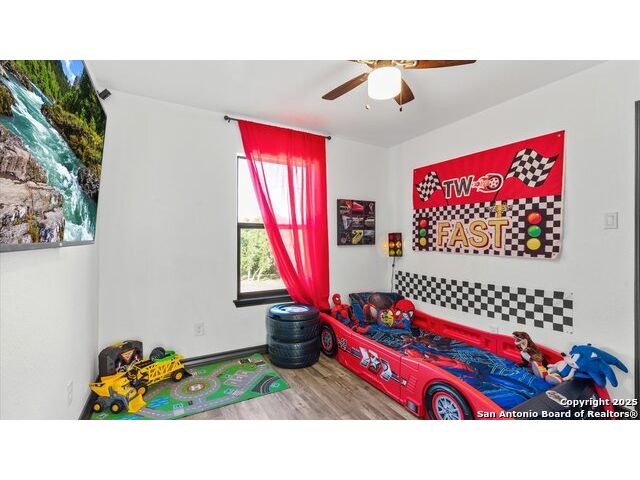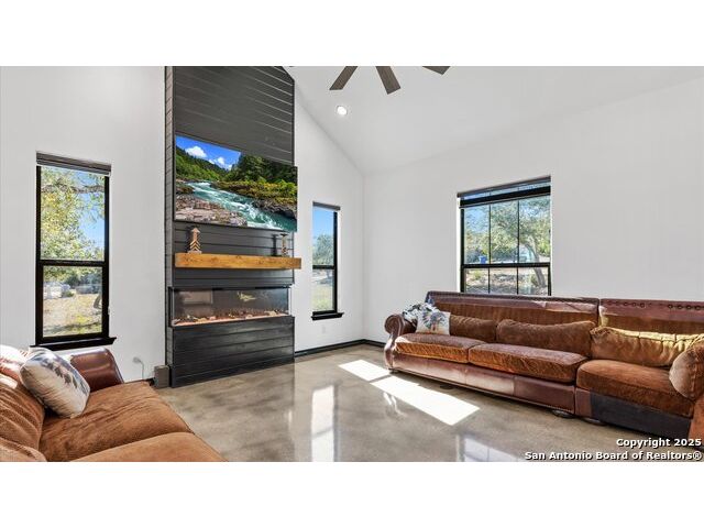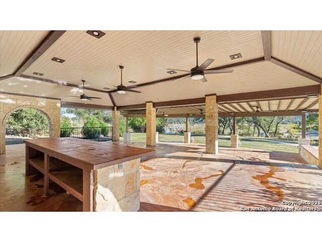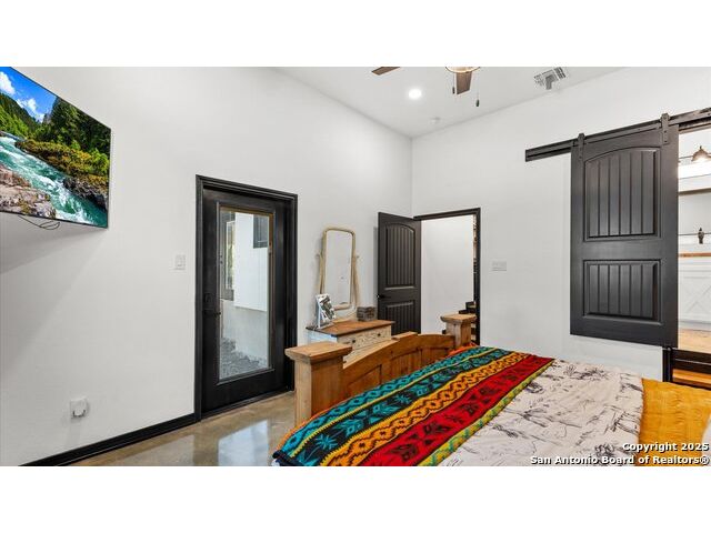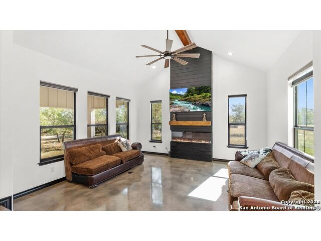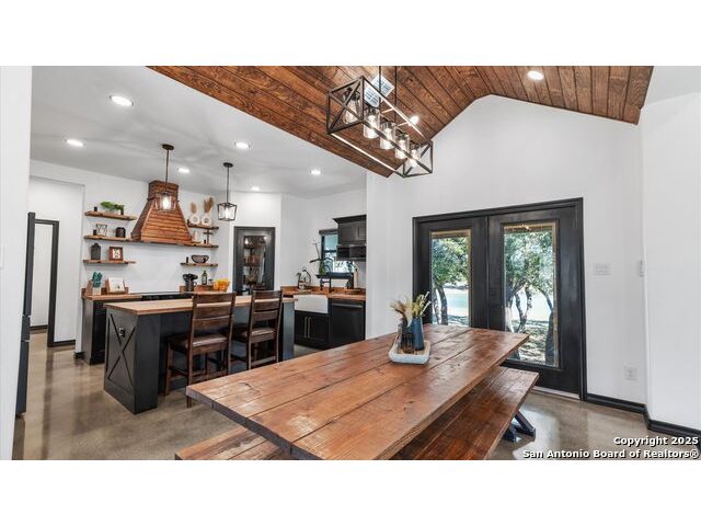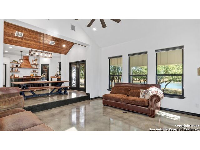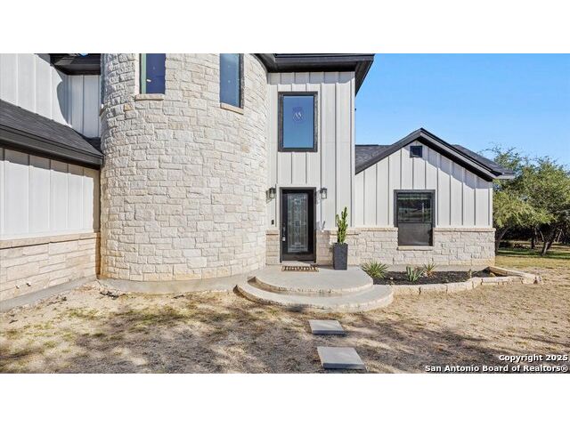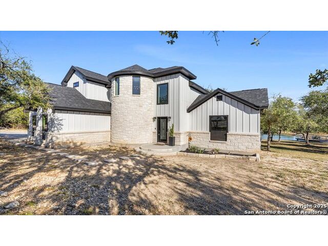 Experience the perfect balance of luxury and Hill Country charm in this stunning custom-built two-story home, ideally situated on just over an acre in the exclusive gated community of Ensenada Shores at Canyon Lake. This 4-bedroom, 2.5-bath retreat offers a thoughtfully designed floor plan with high ceilings, natural light, and elegant custom finishes throughout. Step inside to an open-concept living area that highlights picturesque views of the neighborhood pond and the rolling Texas Hill Country beyond. Step down into the sunken living room that has an electric fireplace and overlooks the beautiful pond. The gourmet kitchen features custom cabinetry, chop block countertops, and black appliances-perfect for both entertaining and everyday living (NOTE: Dryer, washer, and the Refrigerator convey with the house!). The spacious primary suite provides a private retreat with a spa-inspired bath and generous walk-in closet, while the upstairs offers 3 additional bedrooms bathroom and plenty of storage. Just outside your door, enjoy breathtaking sunsets and peaceful pond views in your backyard! This level lot offers over an acre of usable space with room to relax, garden, or gather with family and friends. Location is PRIME - Ensenada Shores offers resort-style living with top-notch amenities, including a lakefront park and pavilion, walking and biking trails, playground, and neighborhood swimming pool. Conveniently located on the southern shore of Canyon Lake, you'll enjoy quick access to entertainment, grocery stores, and restaurants-everything you need just minutes away. Make sure you look for the sign near the stairs to find the hidden room!!