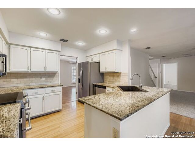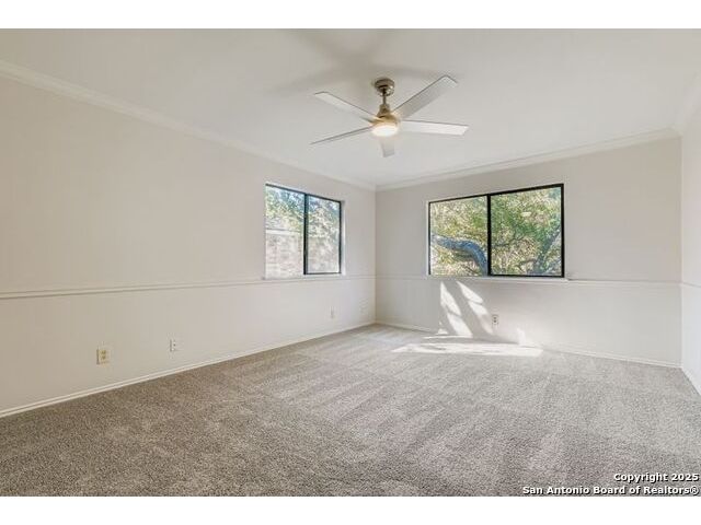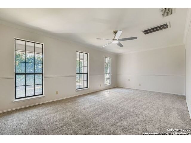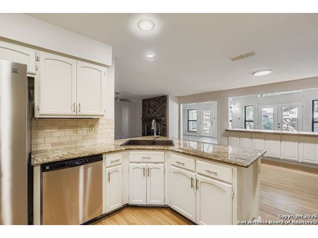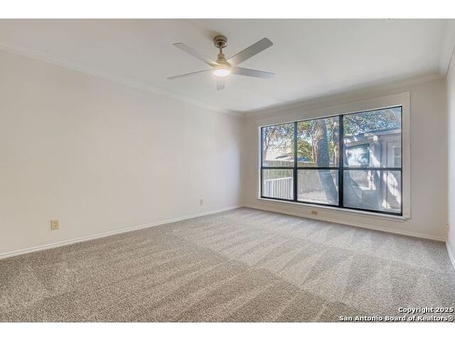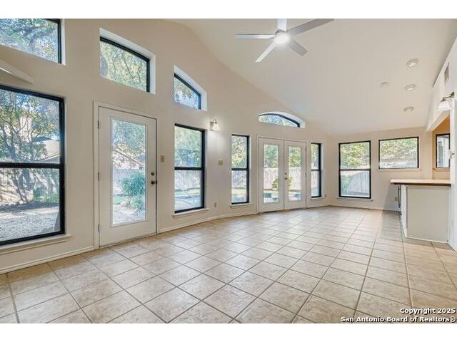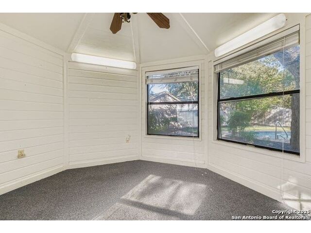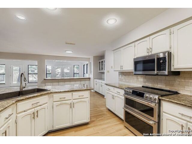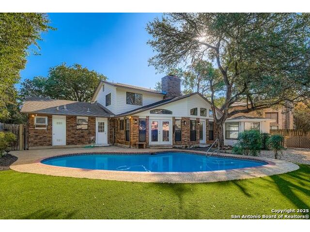 Beautifully landscaped and decked area with a heated pool, and is a well-maintained family home nestled among mature trees. It is conveniently situated near main thoroughfares and within walking distance of Redland Oaks Elementary. The interior boasts new paint throughout, an open floor plan, a formal living and dining combination, a family room, and a game room. These areas are enhanced by a dual gas fireplace, a custom-built entertainment center, and are wired for surround sound. Additional features include walk-in closets, a loft office with built-ins, spacious secondary bedrooms, and ample storage. Furthermore, there is a bonus room detached space and the garage is equipped with air conditioning.