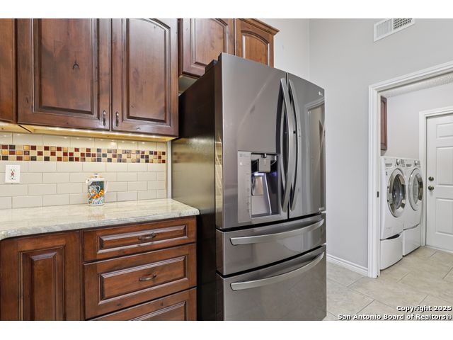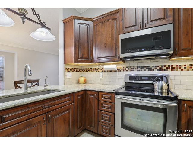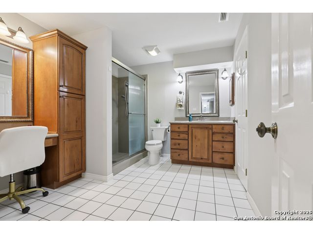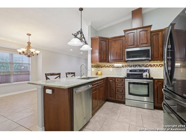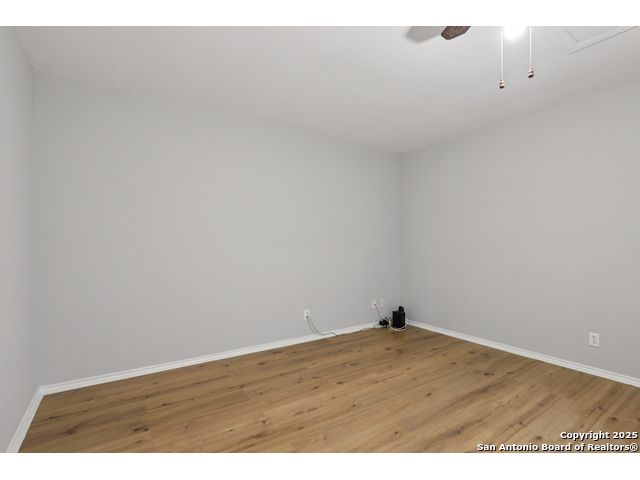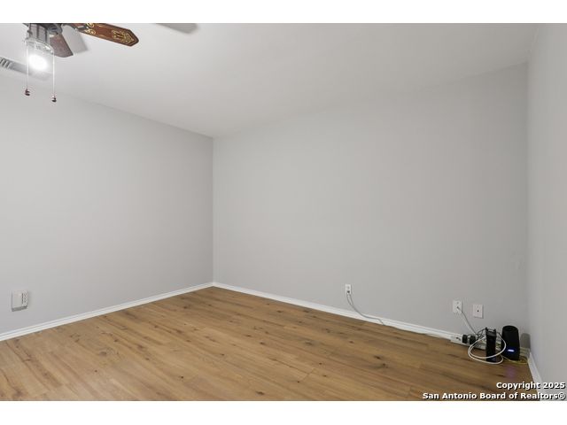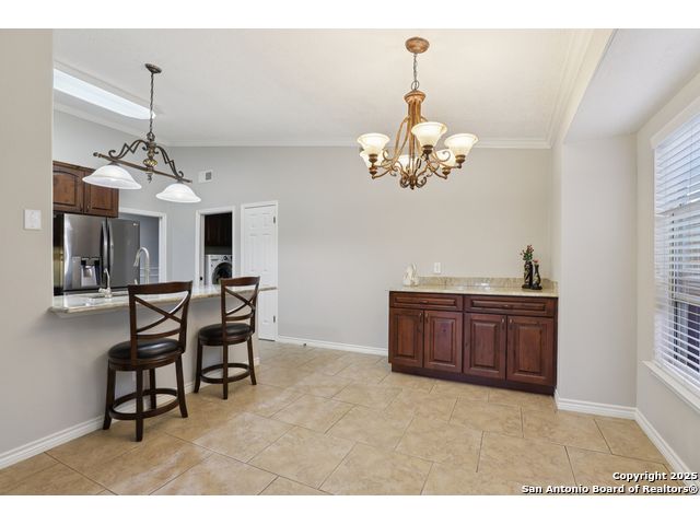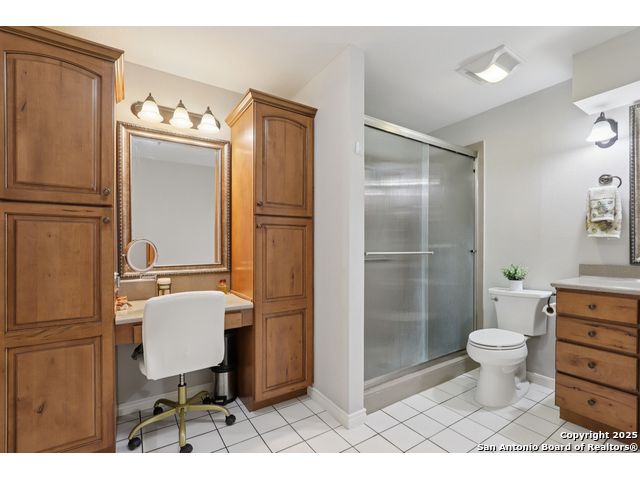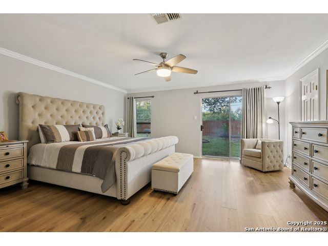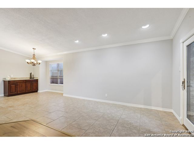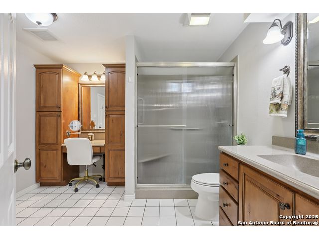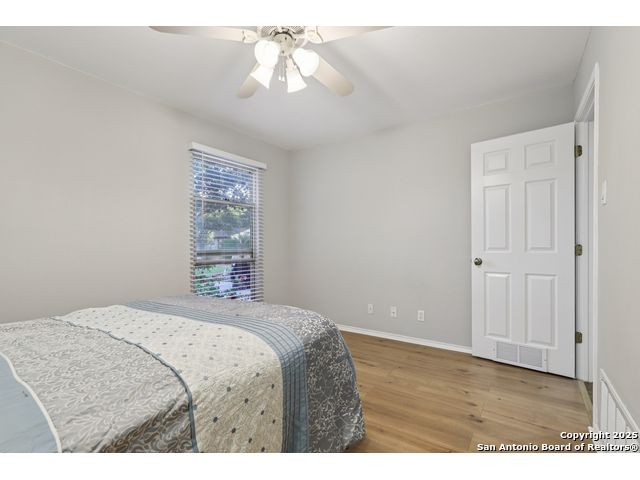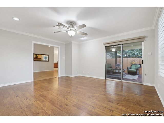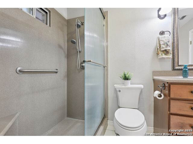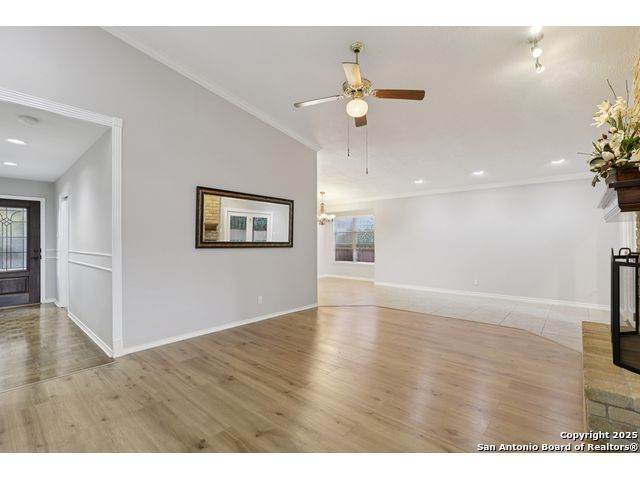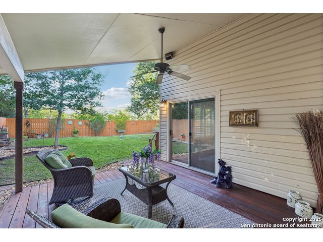 Welcome to 2323 Wilderness Wood, located in the coveted Castle Hills Forest community of San Antonio. This elegant 2,260 sq ft single-story home offers 3 bedrooms, 2 full baths, a private office/nursery off the primary suite, and a flexible bonus room just off the living area-designed for luxury living and everyday comfort. Enter through the mature-treed front yard with a side-entry two-car garage and you're met with vaulted ceilings in the living room and a warm brick wood-burning fireplace, creating a beautiful focal point for both cozy evenings and entertaining. The adjacent flex room adapts easily as a media lounge, formal dining area, game room or second office. The updated kitchen features granite countertops, rich cabinetry, stainless-steel appliances and an easy flow into the dining area. The primary suite is a true retreat with two walk-in closets, dual vanities, a walk-in shower and an attached office/nursery for added convenience. Two additional bedrooms and a second full bath complete the layout. Step into your private backyard oasis. A vaulted-ceiling covered patio overlooks a beautifully manicured yard with tall live-oak trees and professional landscaping. With no neighbors behind and peaceful greenbelt views, this space offers rare privacy in the heart of the city. Castle Hills Forest also offers optional HOA membership, giving members access to community amenities including a pool and tennis/pickleball courts-without mandatory fees. Outdoor enthusiasts will love being within walking distance with a private trailhead access within the neighborhood of the Salado Creek Greenway Trail, a scenic paved trail perfect for walking, running and biking. With quick access to Wurzbach Pkwy, NW Military, the South Texas Medical Center, the Alon Center, the JCC, restaurants, shopping and parks, this home offers exceptional convenience paired with the tranquility of a tree-lined, established neighborhood.