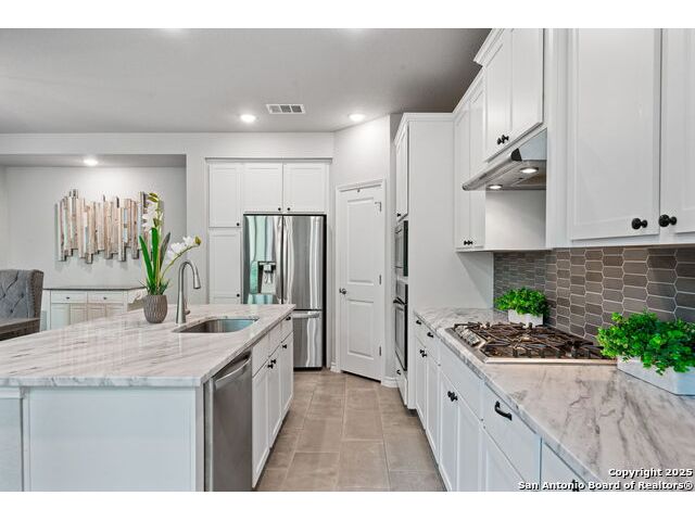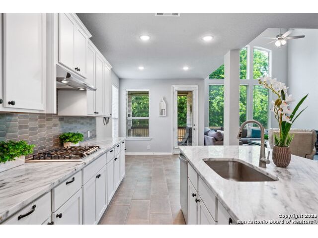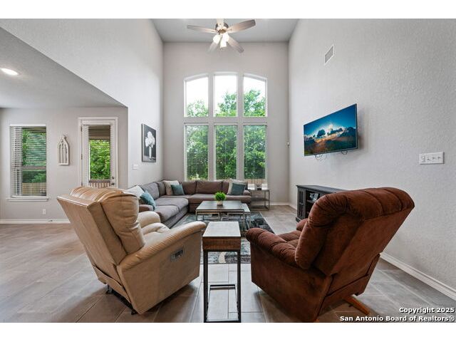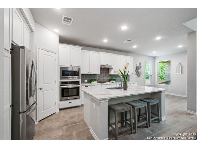 Welcome to 9706 Kremmen, a stunning Highland Home in the prestigious gated community of Balcones Creek, located within the award-winning Boerne ISD. This beautifully designed 4-bedroom, 3-bathroom home offers 2,843 square feet of thoughtfully planned living space. The primary suite and secondary bedroom with en suite are conveniently located downstairs, while bedrooms 3 & 4, game room and a flex room are upstairs for added privacy. Step inside to an open-concept floor plan filled with natural light, soaring ceilings, and elegant finishes throughout. The bright and airy chef's kitchen is a true showstopper, featuring 42" white cabinetry, stainless steel appliances, a large center island, and a stylish designer backsplash-ideal for both daily living and entertaining. The spacious living and dining areas flow seamlessly together, creating an inviting atmosphere for hosting family and friends. A private office provides the flexibility for remote work or quiet study, while the upstairs game/media room adds extra space for relaxation or recreation. Outside, the gated community of Balcones Creek offers resort-style amenities, including a Jr. Olympic pool, park, playground, amenities center, and community garden. This is Hill Country living at its finest-combining luxury, comfort, and community in one perfect package.