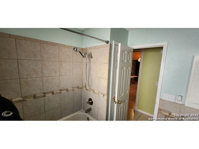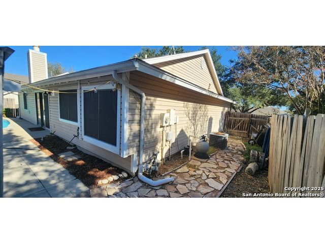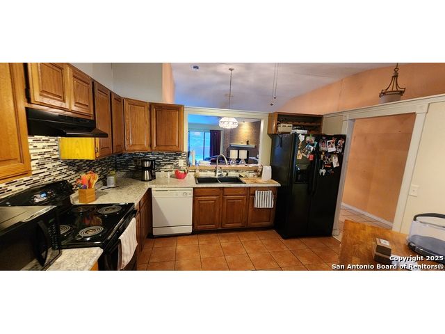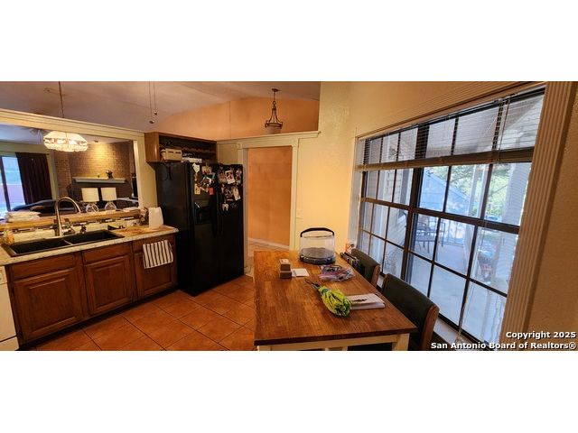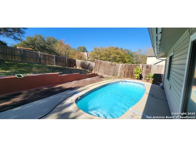 Escape to your San Antonio oasis! This charming home offers the ultimate retreat with a sparkling in-ground swimming pool and a professionally maintained yard, thanks to the built-in irrigation system. Inside, you'll find cool, easy-to-maintain tile flooring throughout and a bright kitchen featuring sleek, updated surfaces and a contemporary sink. The home presents beautifully with a well-maintained exterior and interior aesthetic.