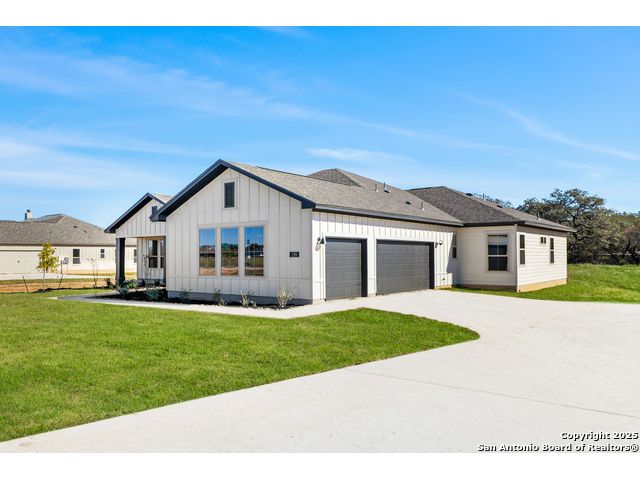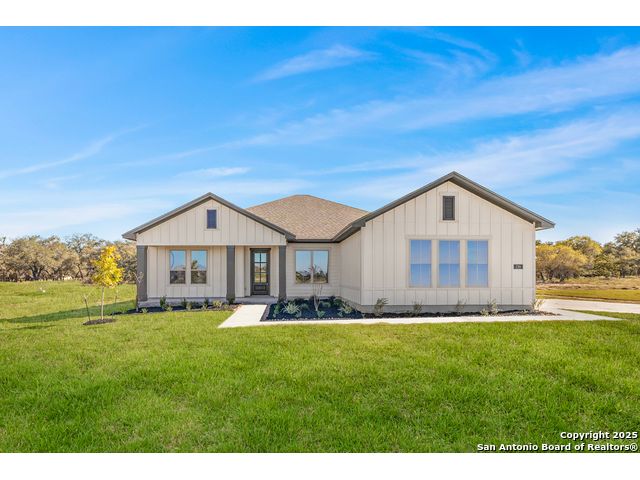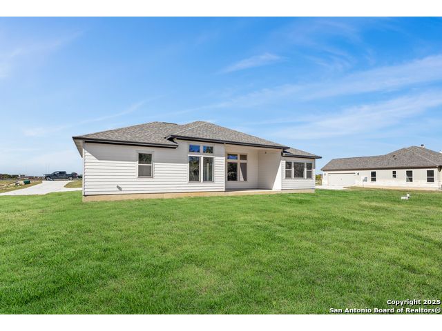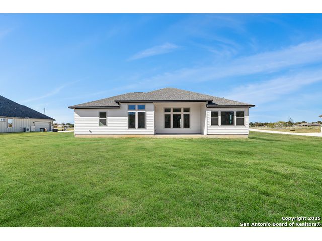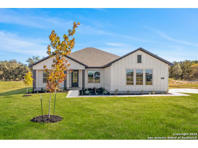 BUILDER FLEX-CASH INCENTIVE AVAILABLE***Discover the perfect blend of luxury and country living in this stunning 2569 SQFT single-story Texas home, situated on a sprawling +1.01-acre lot. Located just minutes from shopping and a short drive to San Antonio. Designed for modern living, the open layout boasts high ceilings and an abundance of natural light, creating a bright and airy atmosphere. The spacious living area features perfect for relaxing evenings. The gourmet kitchen is a chef's dream, equipped with stainless steel appliances, custom cabinetry, and a large island, ideal for entertaining. This home offers 4 bedrooms and 2.5 bathrooms, including a luxurious primary suite with a double vanity, a stand-up shower, and a generously sized walk-in closet. A side-entry garage adds to the home's curb appeal and functionality. Enjoy breathtaking sunset views from your expansive backyard, providing the perfect retreat for outdoor living. Don't miss the opportunity to make this exceptional home yours-schedule a tour today!