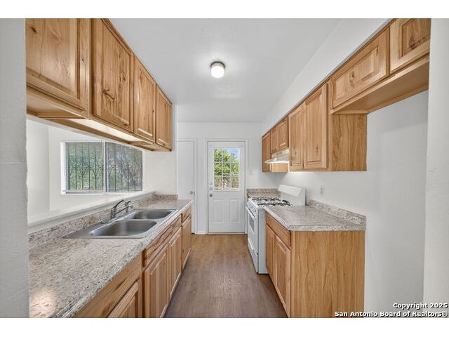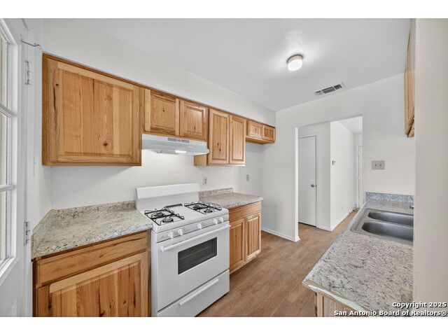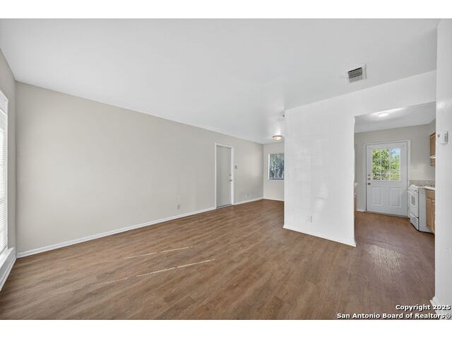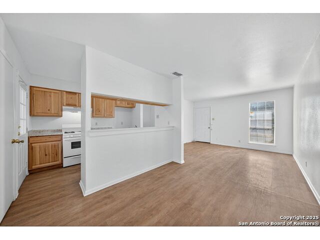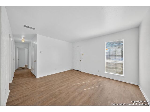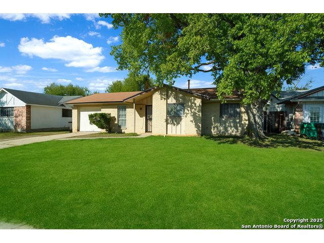 Step inside this charming one-story home and instantly feel at ease. The inviting living room welcomes you in and flows effortlessly into the open kitchen and dining areas, perfect for gathering with friends or enjoying a quiet evening meal. The updated kitchen features beautiful cabinetry and upgraded laminate countertops, offering both style and functionality for daily living. With no carpet in the main living spaces, cleaning is a breeze, while the bedrooms feature plush carpet for added warmth and comfort. Enjoy year-round comfort with ceiling fans throughout, and appreciate the convenience of an in-garage laundry area that keeps chores neatly tucked away. Step outside to a spacious backyard, ideal for weekend barbecues, pets, or creating your own garden retreat. A large patio provides the perfect spot for relaxing or entertaining outdoors. Move-in ready and full of potential, this home offers the perfect blend of comfort, functionality, and value in a welcoming neighborhood. Just minutes from your door are daily conveniences and lifestyle perks - groceries at H-E-B on Austin Highway make meal prep easy, while Kardon Park offers open lawns, walking trails, and picnic spaces for outdoor fun. Families will appreciate the nearby North East Independent School District campuses, rounding out a community-friendly setting that combines suburban comfort with city convenience. Come see why this home should be yours!